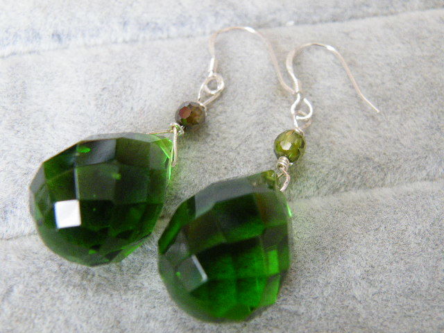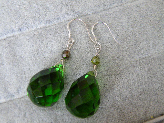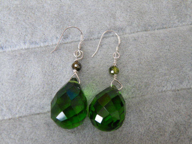 2052.グリーン カラーストン ビーズ シルバー925 ピアス