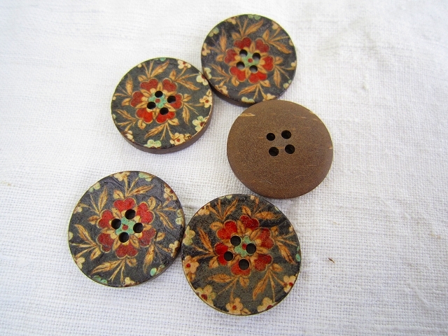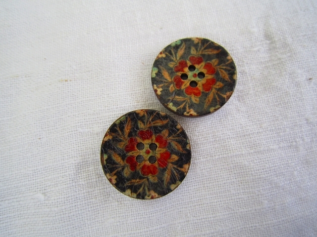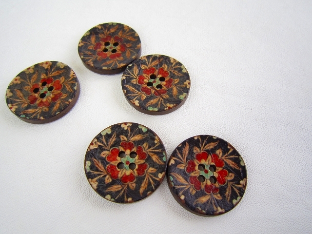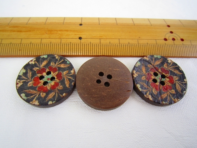 ドイツ 4穴ボタン ココナッツボタン ブラックレッド 25ミリ