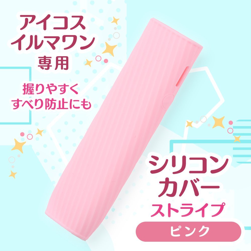 プルプラ アイコスイルマワン対応 シリコンカバー ソフトケース ストライプ (ピンク)