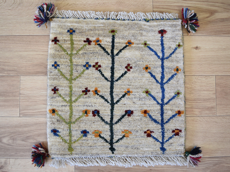 新品 ペルシャ ギャッベ 座布団 クッション サイズ ミニラグ 43 x 43 cm No.2577 肉厚 ウール 手織り 絨毯 ギャベ チェアマット