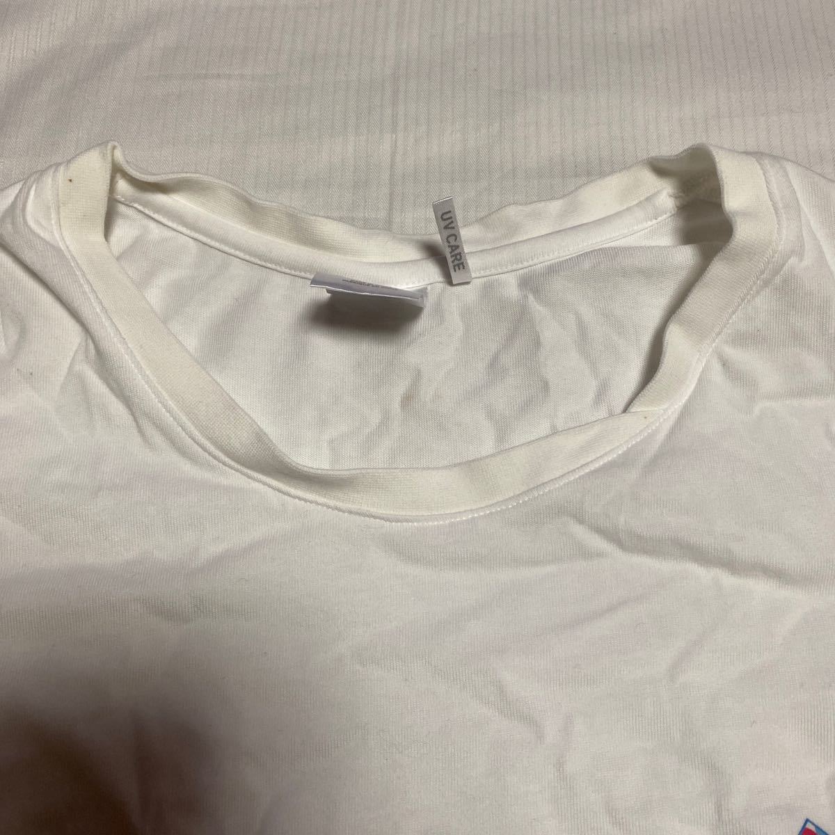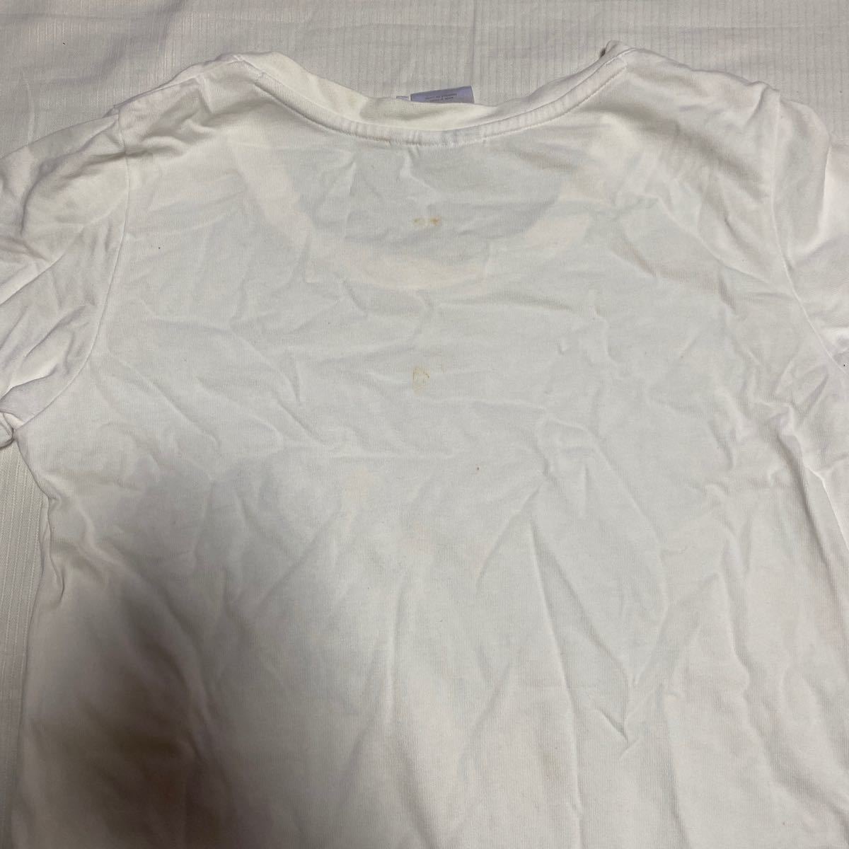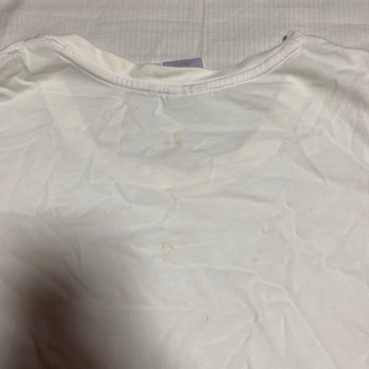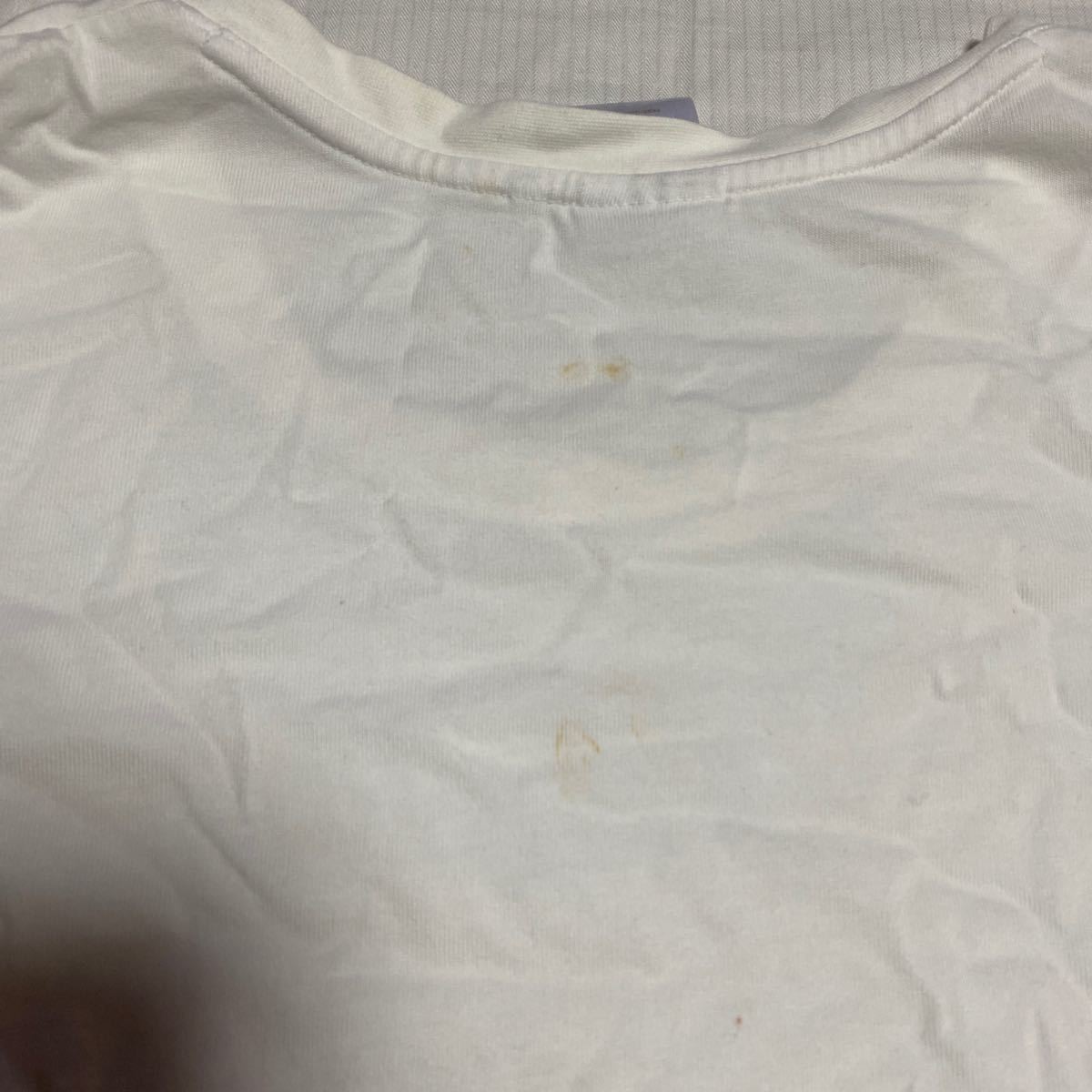 首周りよれ黄ばみあります。裏側首あたりから肩甲骨辺りに数カ所汚れありますご注意下さい。