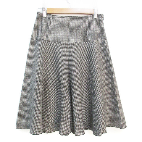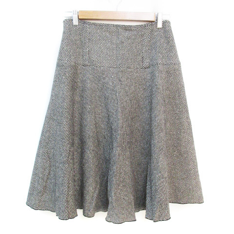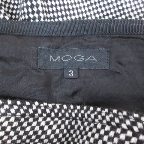 モガ MOGA フレアスカート ミモレ丈 ウール シルク混 総柄 3 白 黒 ホワイト ブラック /FF36 ■MO レディース