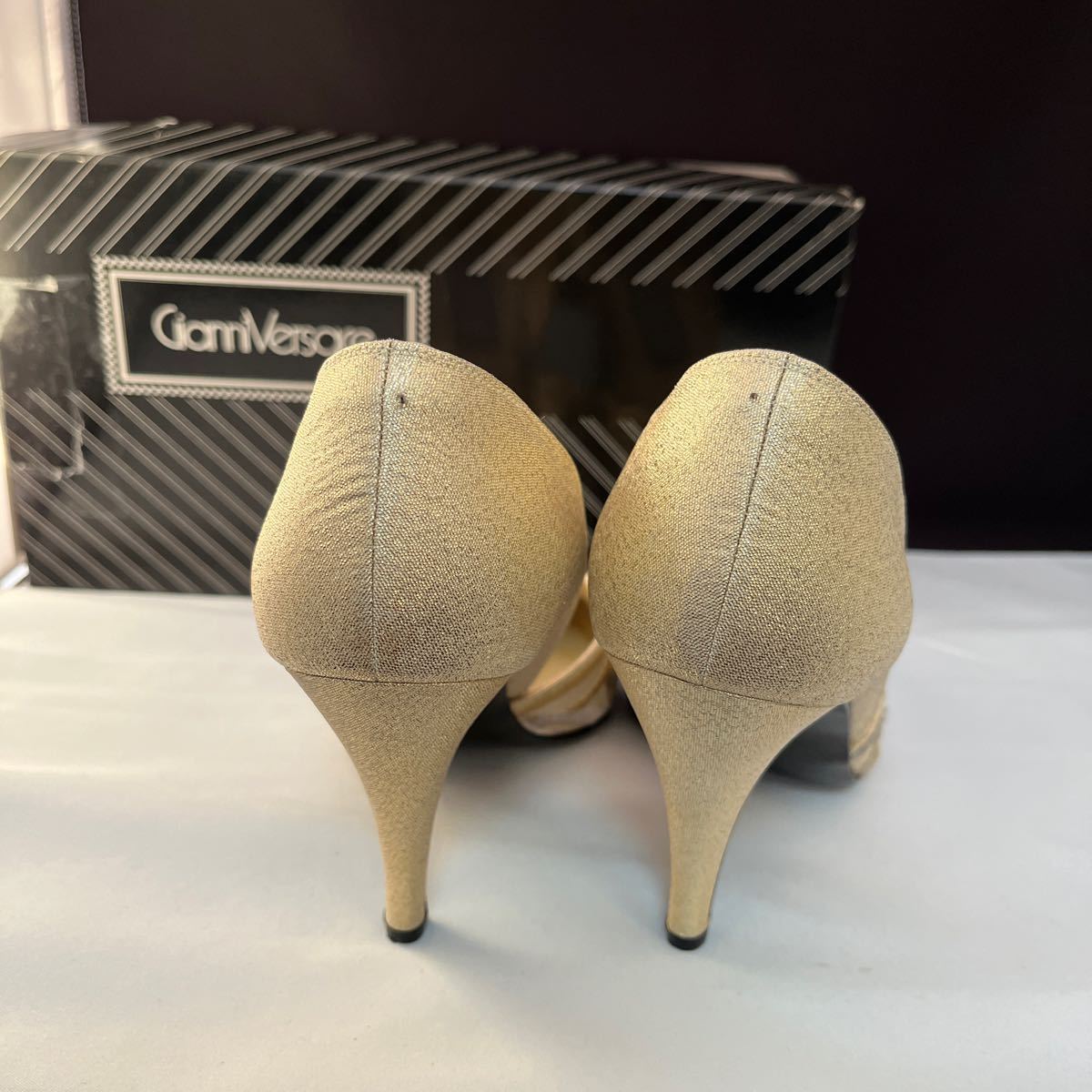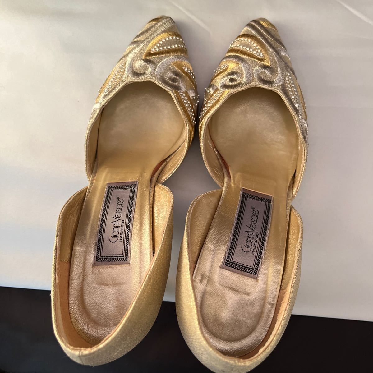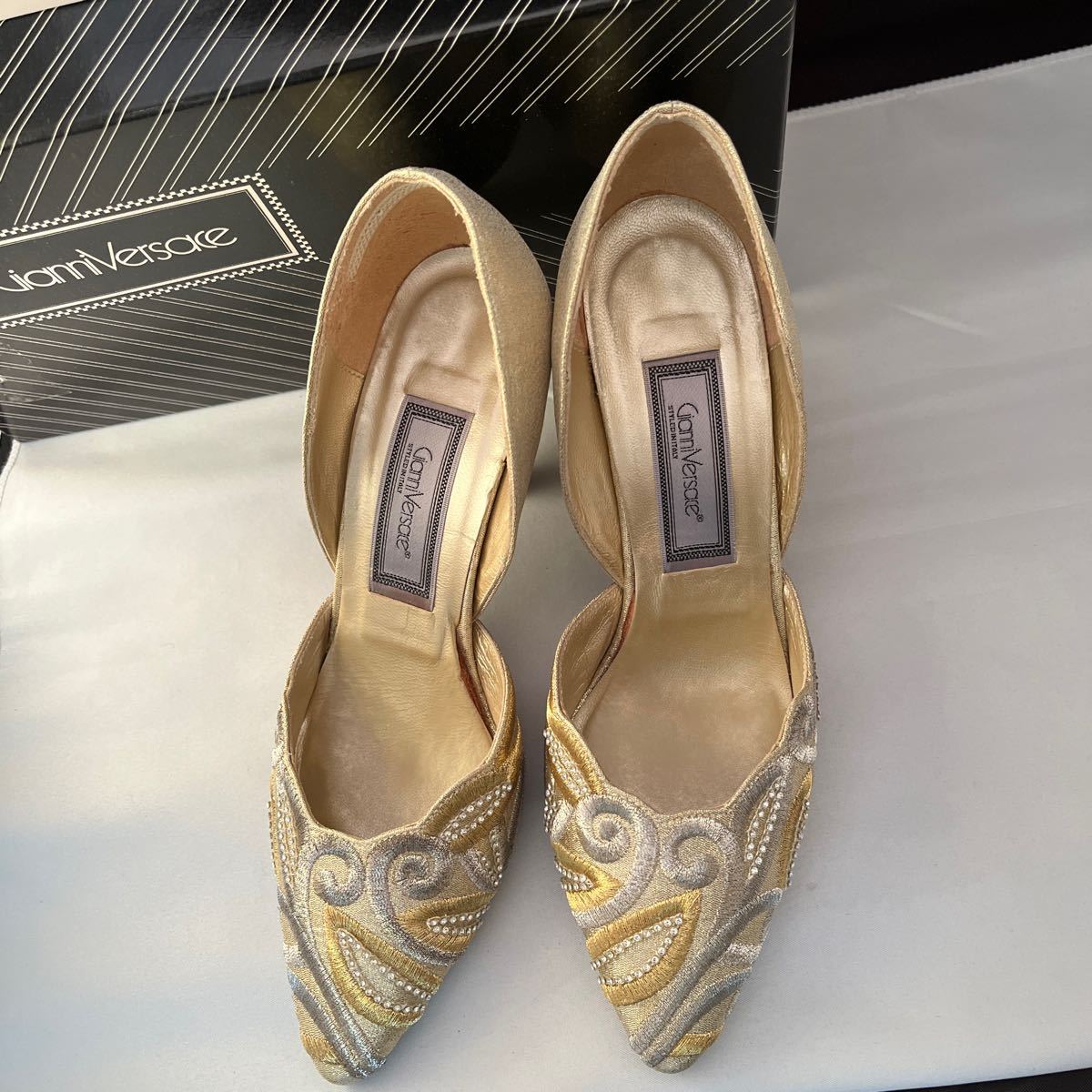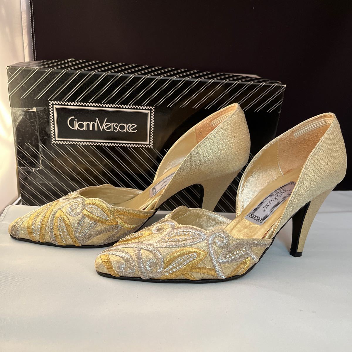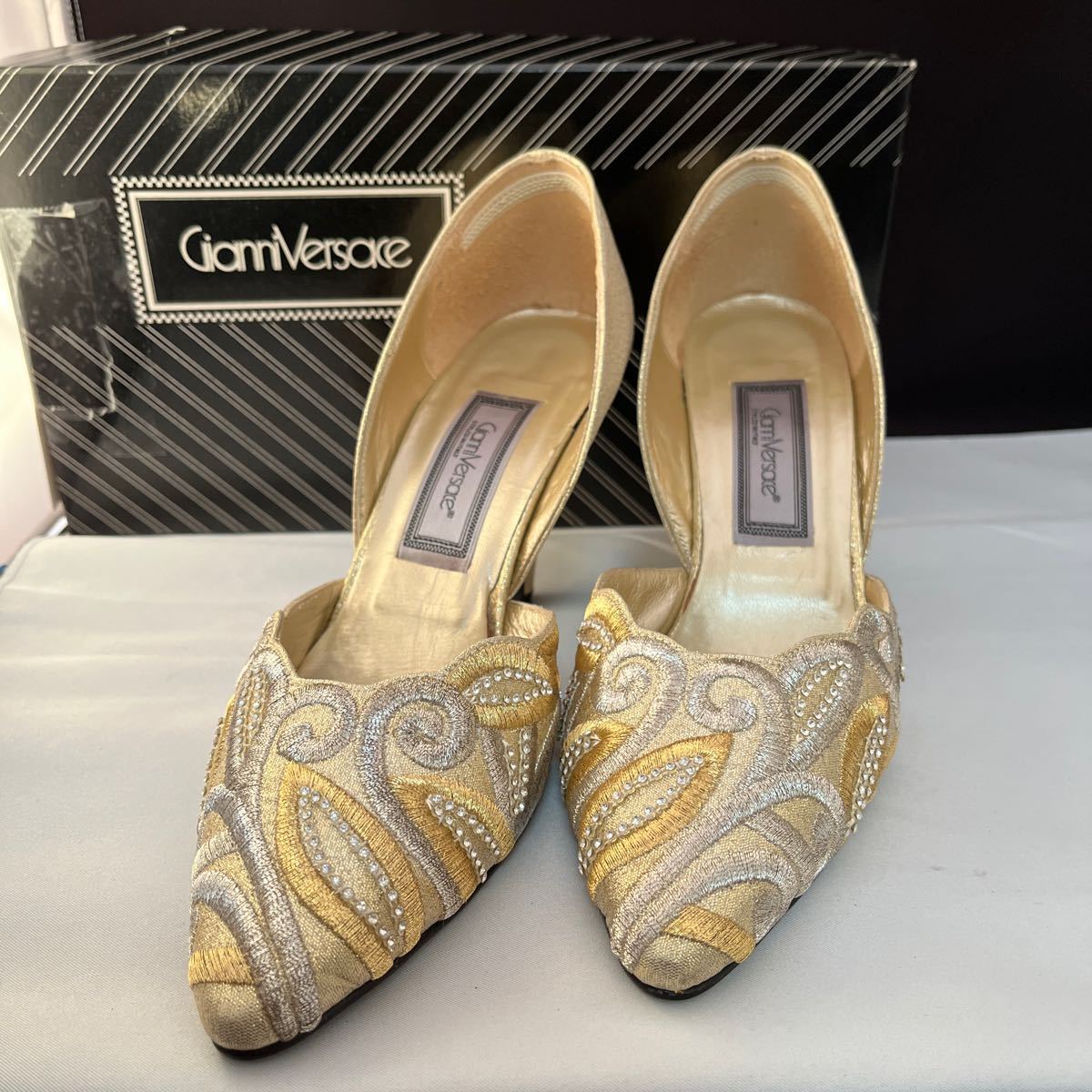 ゴールドとシルバーの刺繍が施された大変綺麗なデザインのパンプスです
