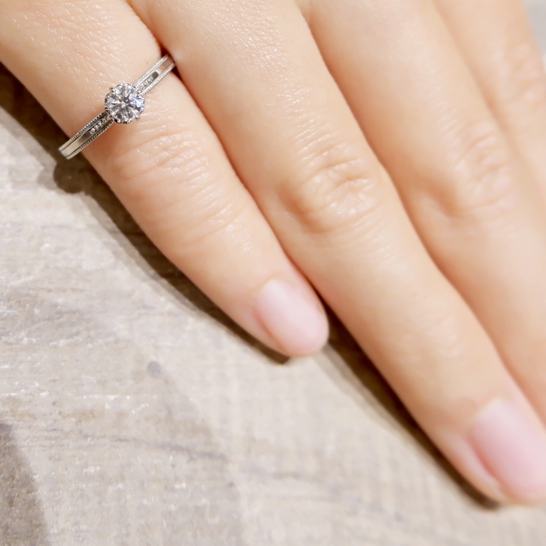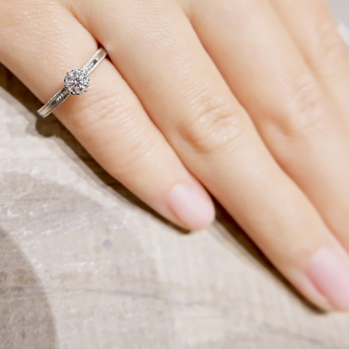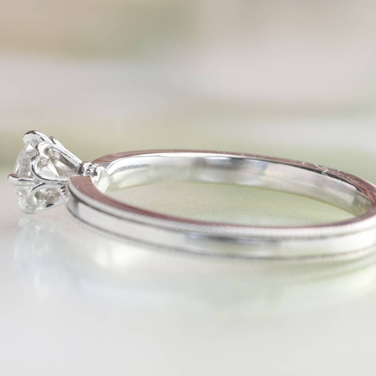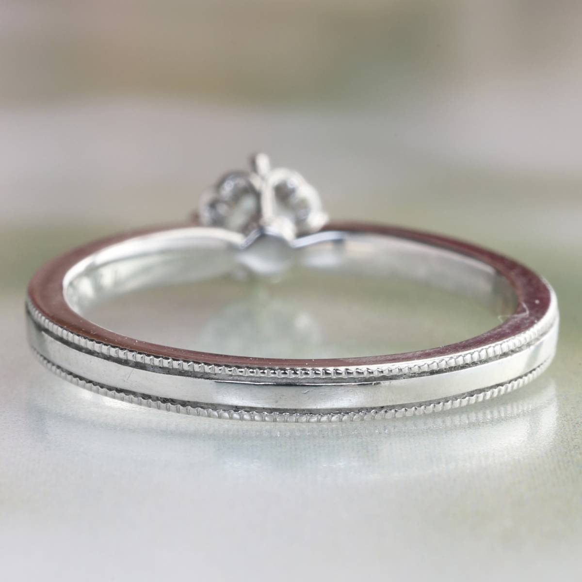 上質なダイヤモンドが美しい輝きを放ち、枠にはミルグレインが丁寧に施されています。