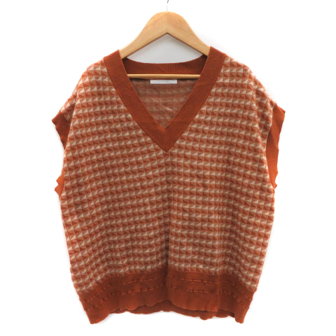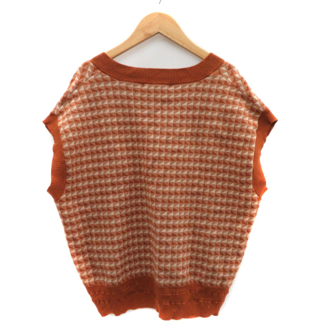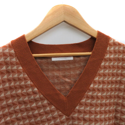 レトロガール RETRO GIRL ニット カットソー フレンチスリーブ Vネック 総柄 ブラウン /YK42 レディース