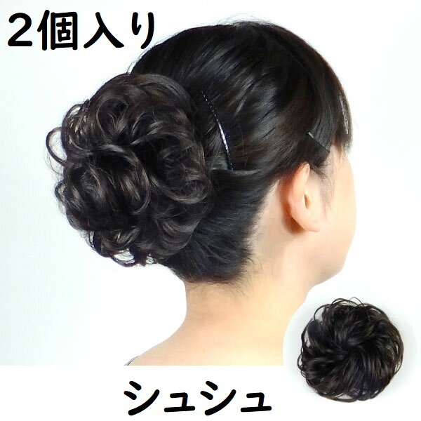 送料無料 2個セット シュシュ 黒髪 黒 付け毛 女性 子供 七五三 No.731 B