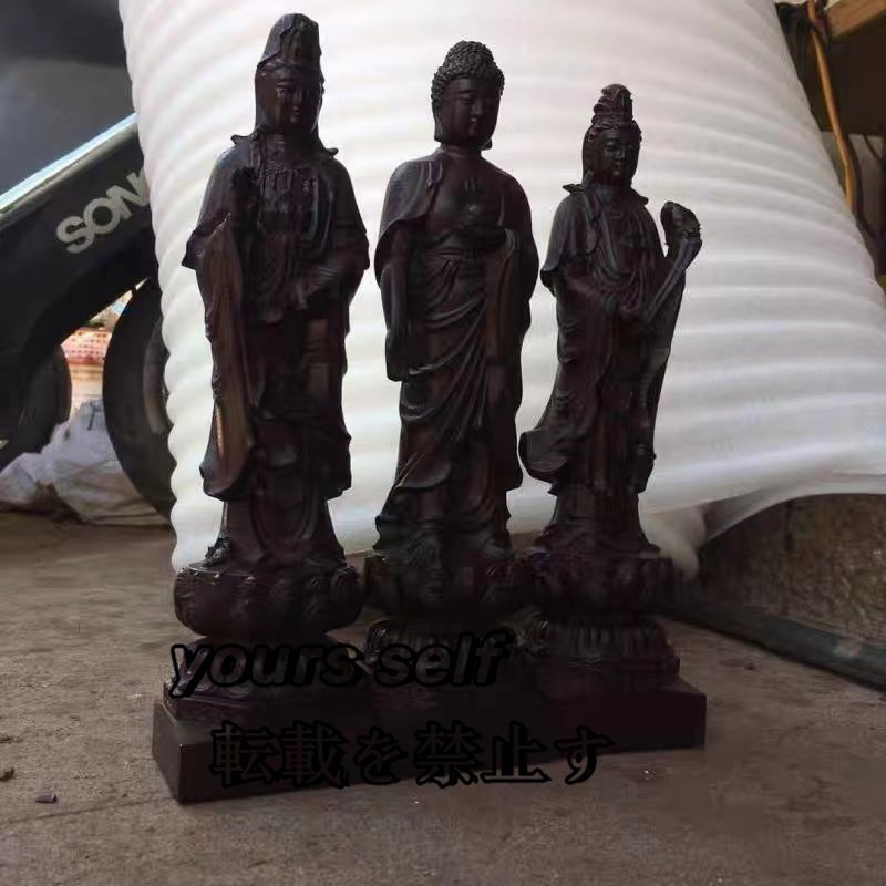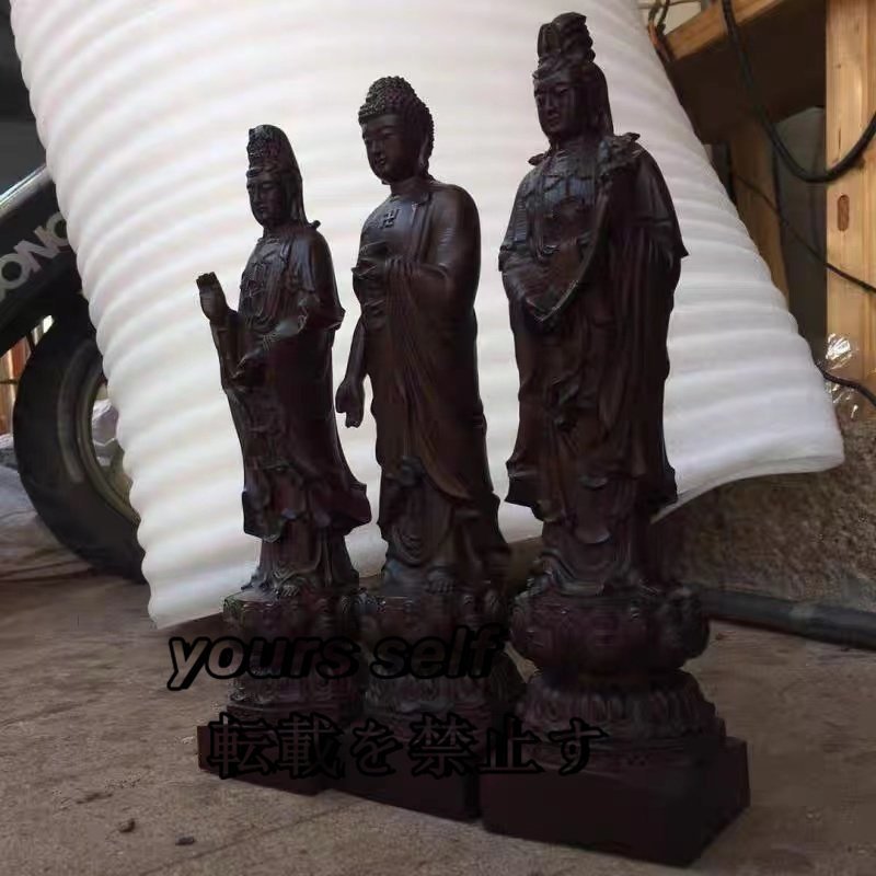 品質保証★沈香 木彫刻 西方三聖阿弥陀仏駅像★神像観音仏像家の家勢は置物まで 高さ22cm