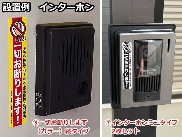 しつこい迷惑で悪質な訪問者に一切お断りステッカー! セールスマン、防犯対策、訪問販売、宗教勧誘、新聞勧誘、NHKに効果てきめん! ポストやインターフォン、玄関ドア付近にご利用ください。 ◎この商品は文字変更・サイズ変更ができません◎ 落札価格は1枚の価格です。 ●サイズ:縦30mm×横150mm ●耐候年数:3~5年 ●UV加工、防水加工 |
