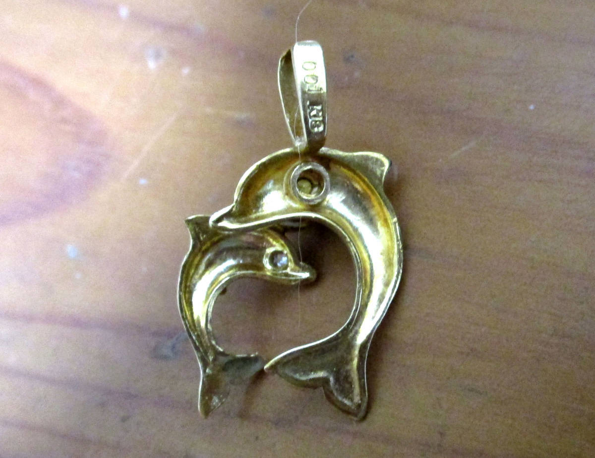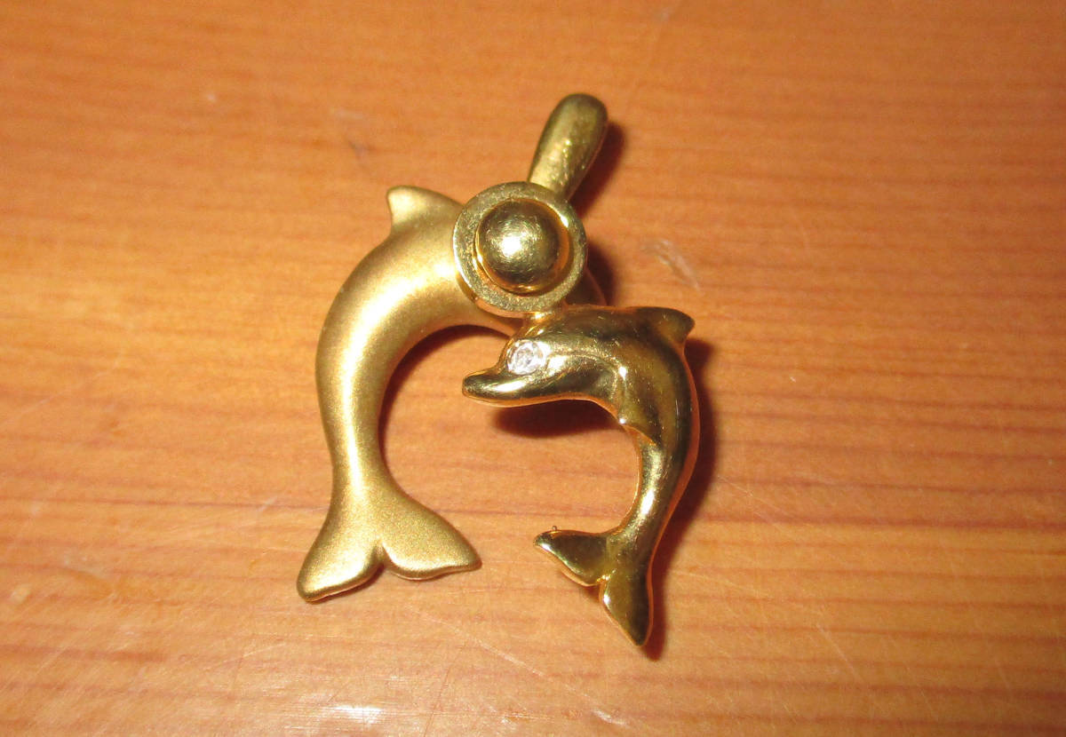 ]中古 イルカをモチーフにしたペンダント トップ K18とダイヤ入り