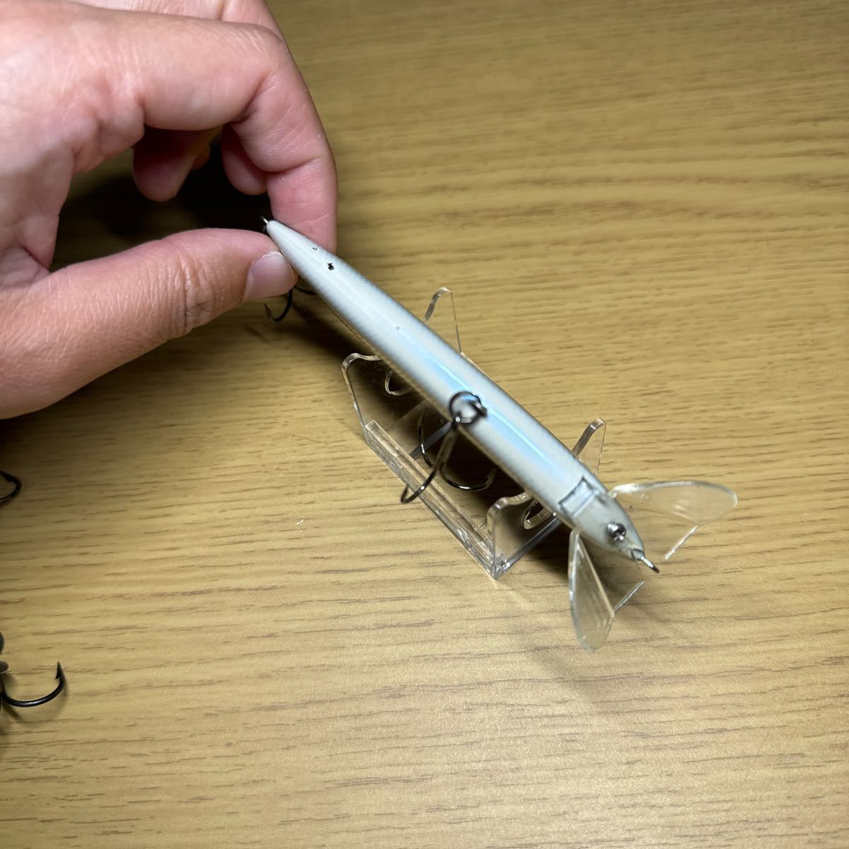 スピナーベイトやフロッグ、ラバージグのようにフック交換が出来ないものを除いて、フックの状態は商品説明の状態に考慮していません。