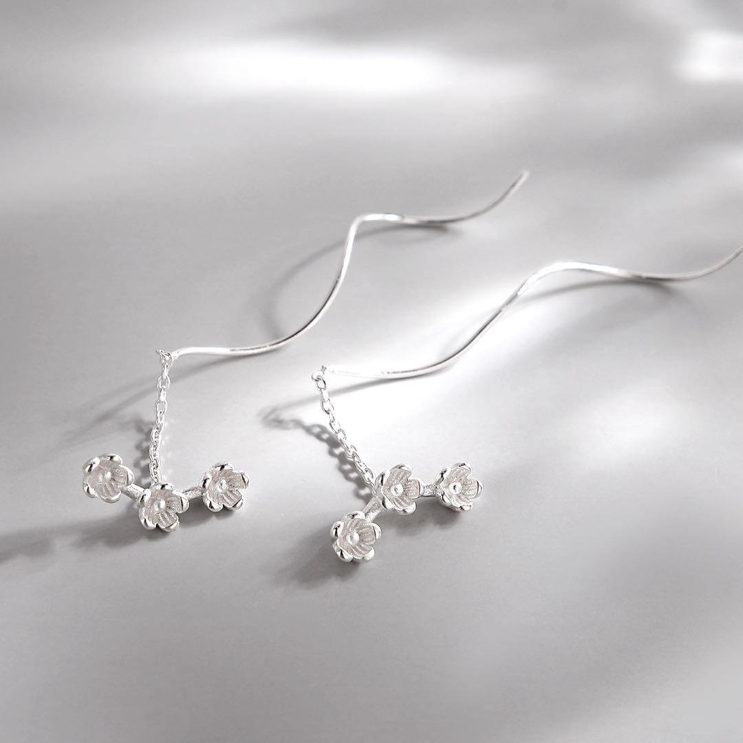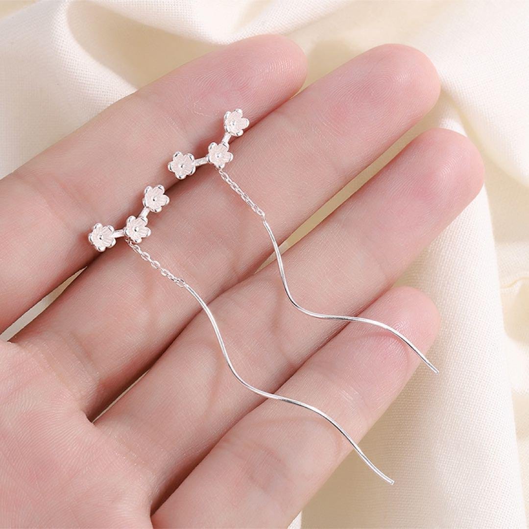 新品 可愛い3連お花のチェーンピアス レディースピアス チェーンピアス