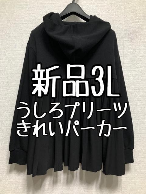 新品☆3L黒系♪後ろプリーツ異素材使いパーカー♪フェミニン☆z485