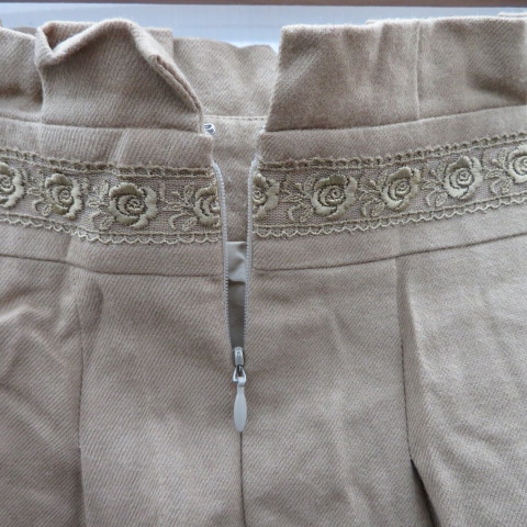 【素材】表地 ウール98% ポリウレタン2% ウエストレース 基布 ナイロン100% 刺?糸 レーヨン100% 裏糸 綿100% 裾レース 綿100% 裏地 ポリエステル100%