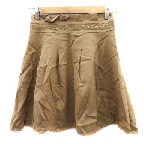 ロディスポット LODISPOTTO フレアスカート ギャザースカート ミニ丈 レース ウール M ベージュ /YK14 レディース