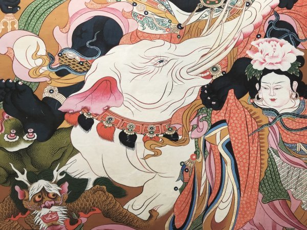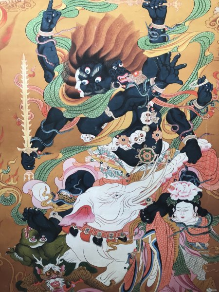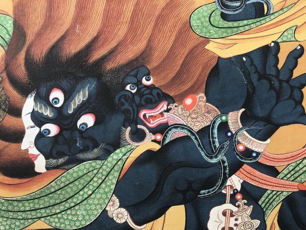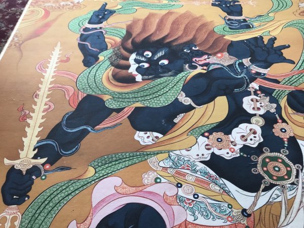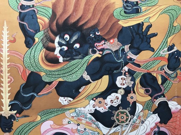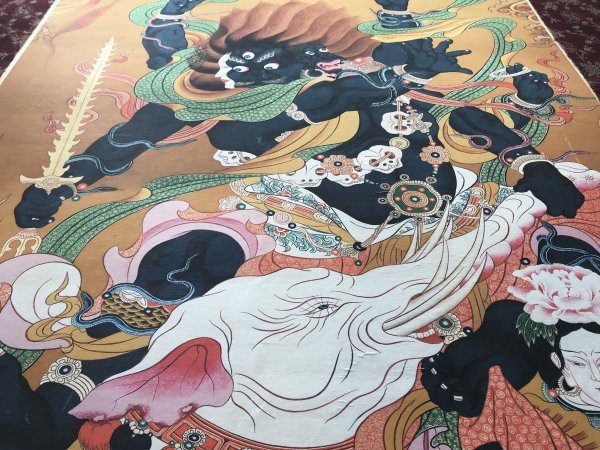 珍品 卍 仏教美術 『 軍荼利明王 細密画 』 89.5cm 密教 真言風 仏画 | ||||