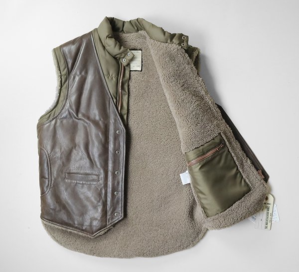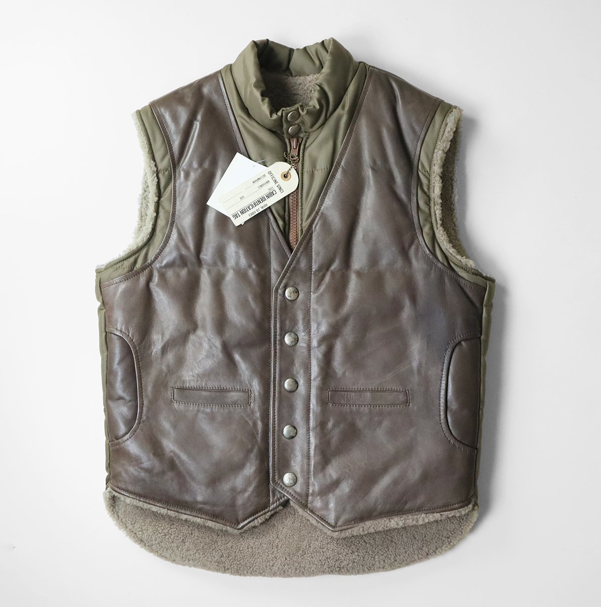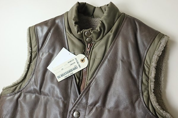 【送料無料 80%OFF】★タグ付き Vinci ◆ レザー×ナイロン レイヤード ベスト 茶 48 (定価11万円) 裏ボア イタリア製 ヴィンチ ◆48/RC-1