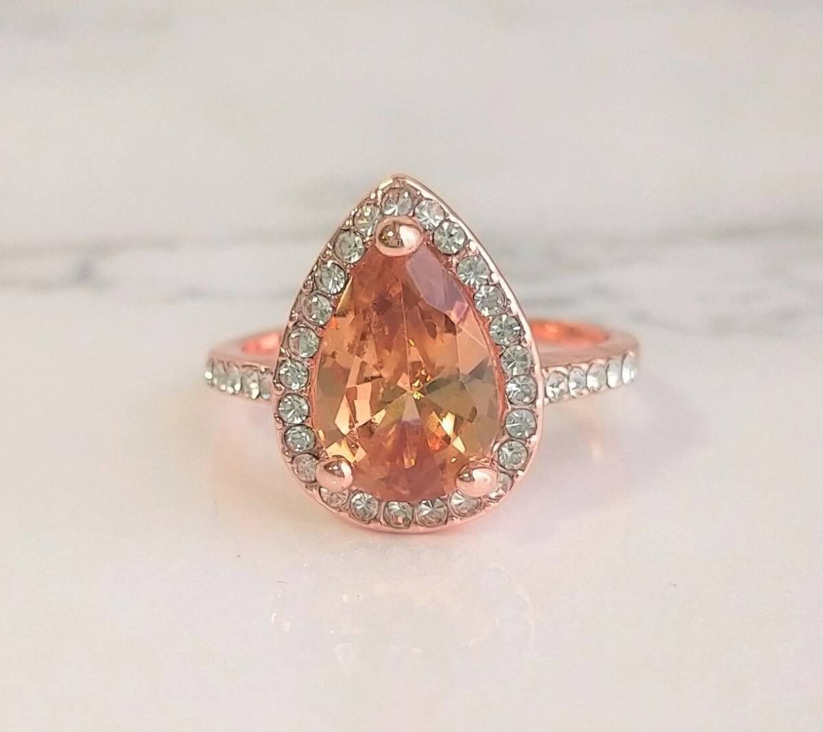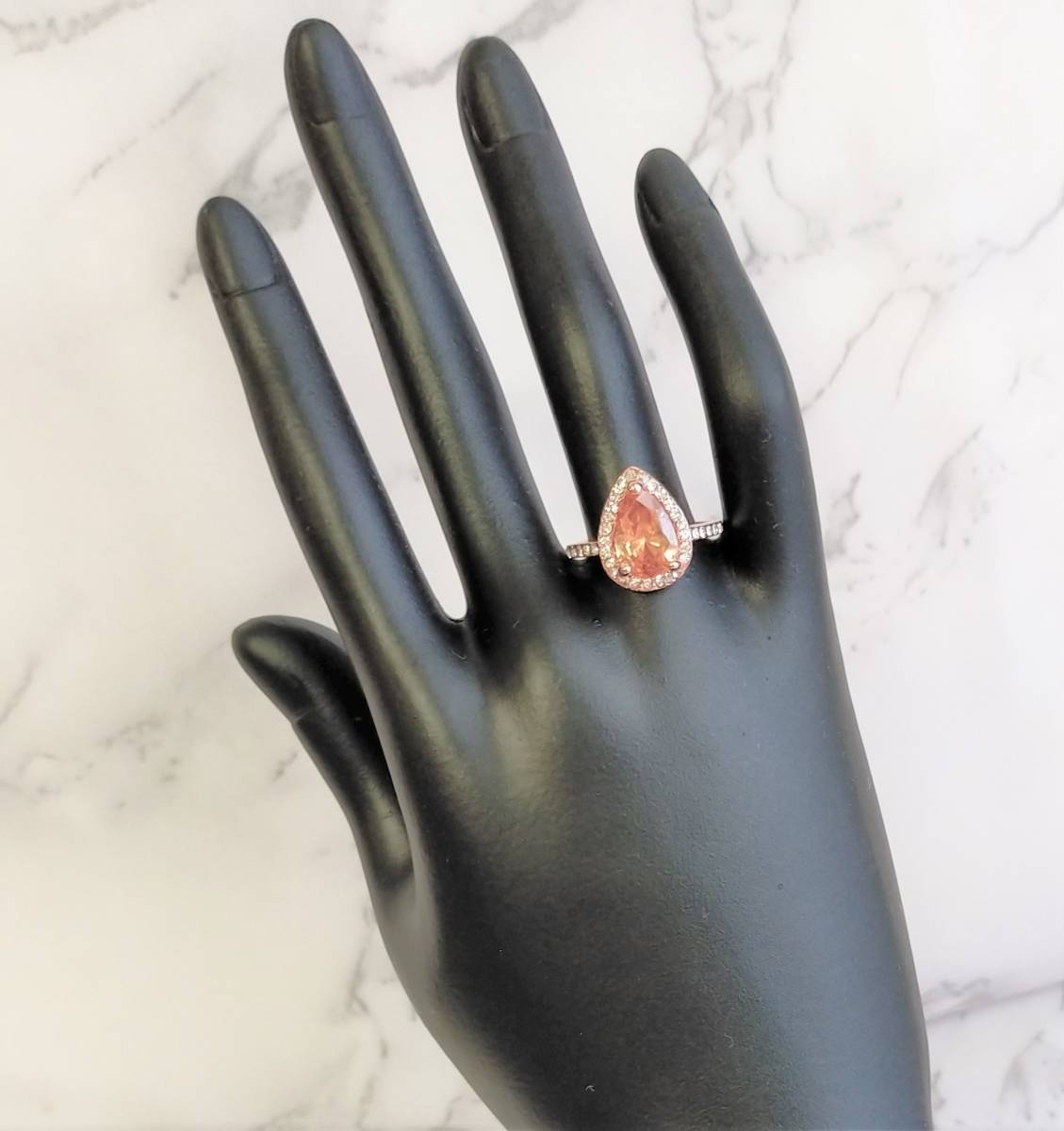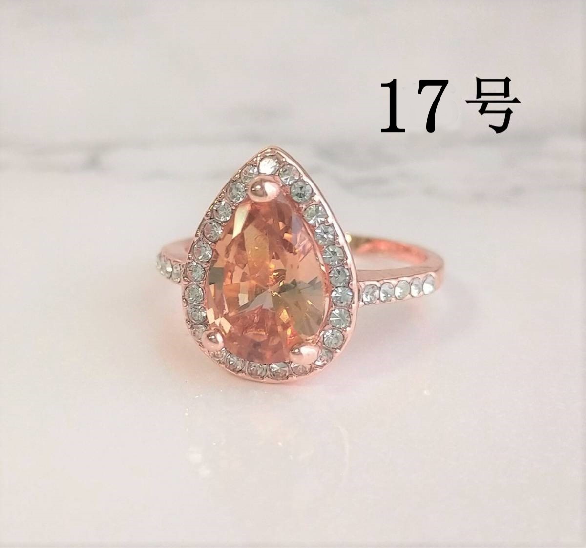 ドロップリング ピンクゴールド 17号 ジルコニア 普段使い 指輪 ドロップ リング パパラチアサファイアカラー