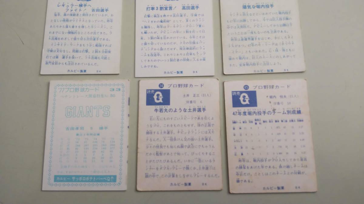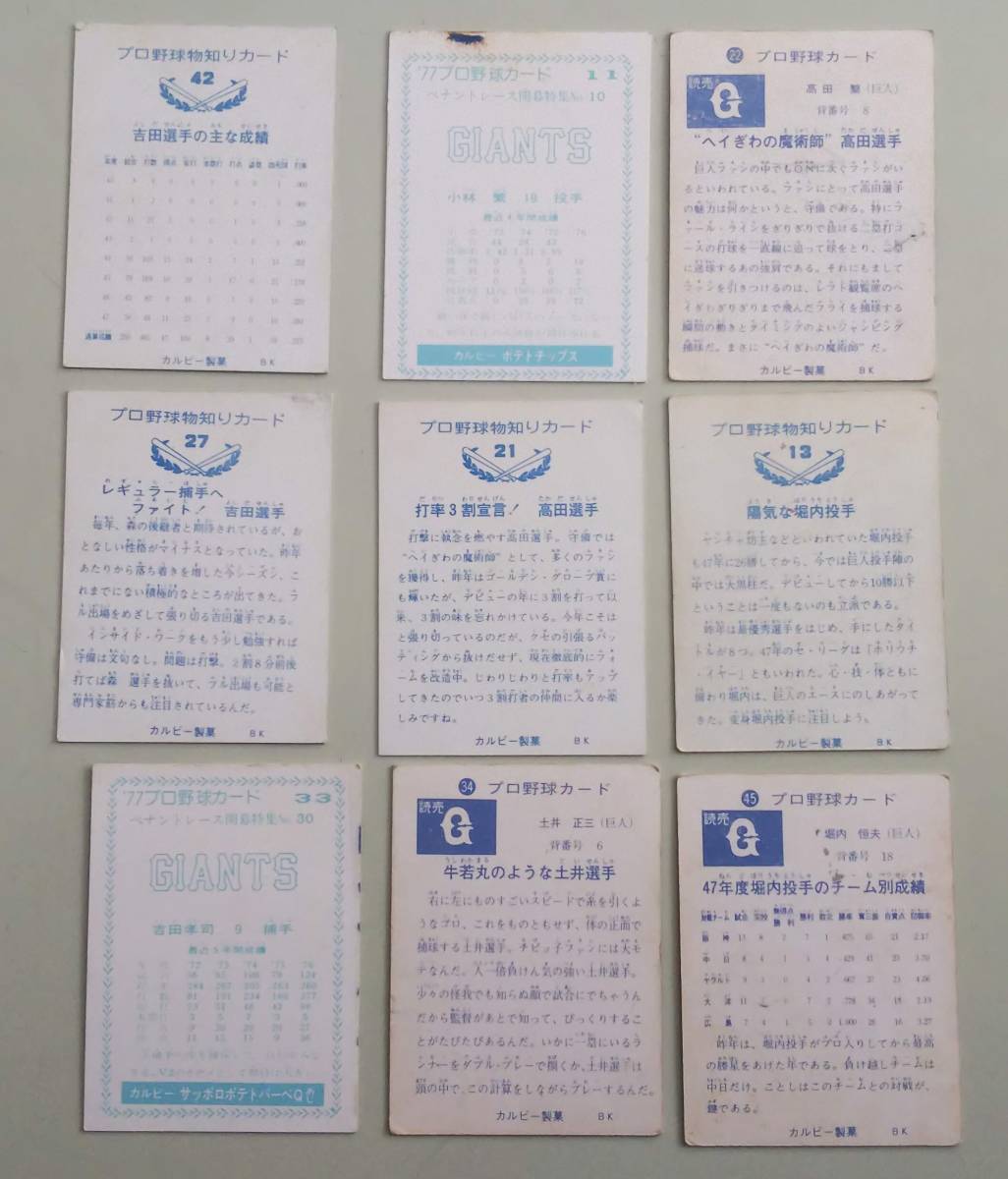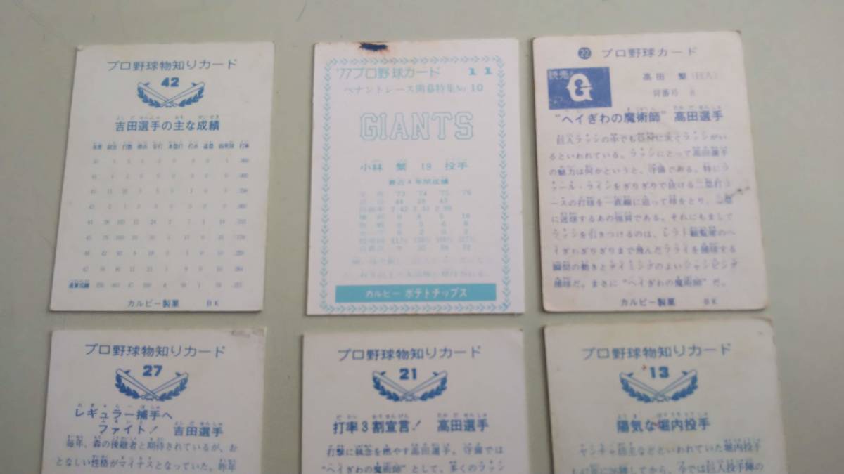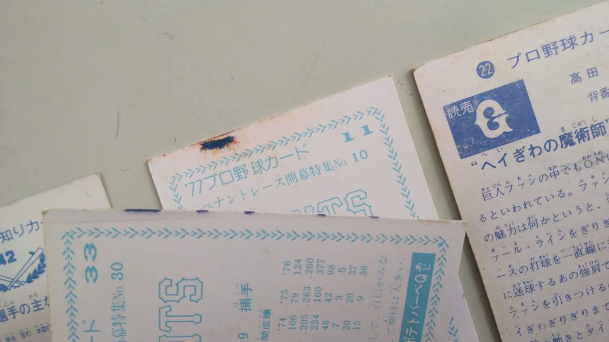 ばら売りできません。73年、77年、青版・旗版・バット版のセットです セット内容:記載ミスご了承下さい。画像が正です 73年 No.42 巨人 吉田孝司 77年 No.11 巨人 小林繁 73年 No.22 巨人 高田繁 73年 No.27 巨人 吉田孝司 73年 No.21 巨人 高田繁 73年 No.13 巨人 堀内恒夫 77年 No.33 巨人 吉田孝司 73年 No.34 巨人 土井正三 73年 No.45 巨人 堀内恒夫 スレ痕、シワ、裏面に汚れ、端部線引き(画像7)のあるカードも含まれます コレクター品ではないので、状態に神経質な方の入札はお勧めしません 輸送中に折れないように厚紙台紙などで補強・防水梱包します 別出品中のトレカ、コレカ、テレカ、ポスカ、ラミカ、カード付グッズの一覧はこちら ※ヤフオクで別出品中の人気商品はこちらです。 |