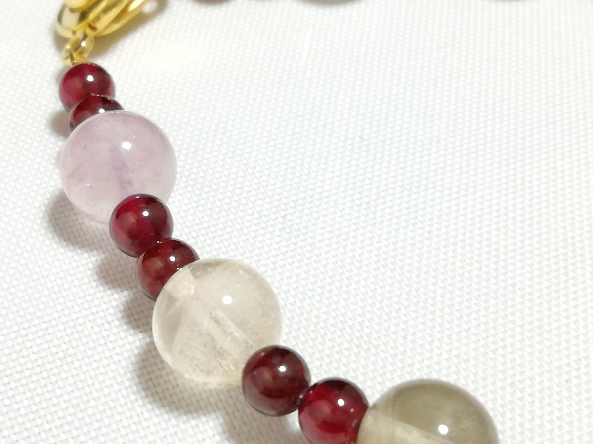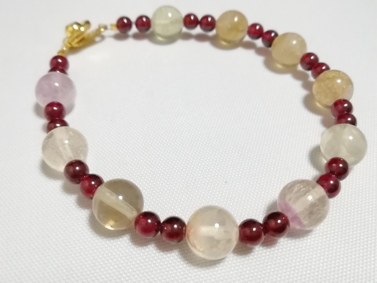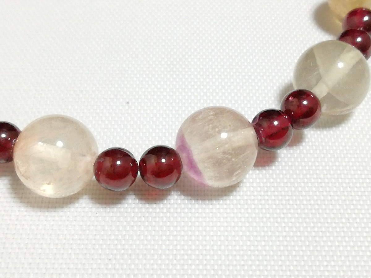 天然フローライト&天然ガ−ネットコンビお守りブレスレット