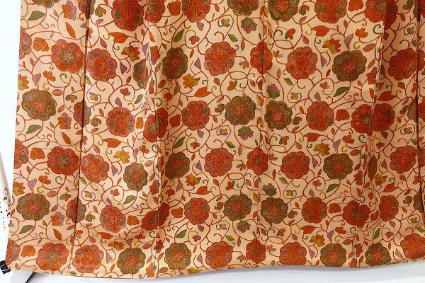 〔着物の色〕 ベージュ地 〔八掛の色〕 オレンジブラウン 〔着物の素材〕 正絹 |