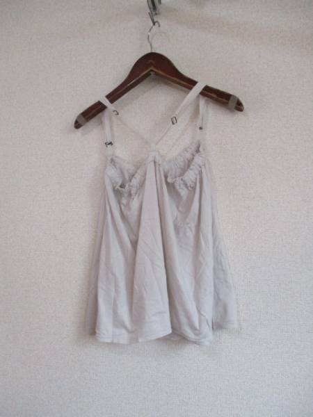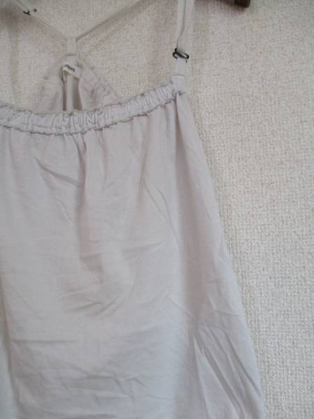 | 商品紹介 | 胸周りにゴムでギャザーが入ったキャミソールです。 肩紐は後ろで1つにつながっています。 色は少しベージュが混ざったような薄いグレーです。 《素材》 綿100% |