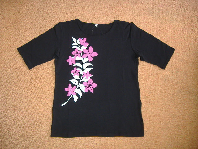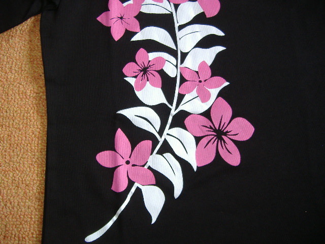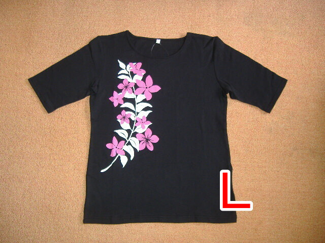 【月初セール!】5分袖Tシャツ◎マイレ&プルメリア◎黒◎Lサイズ