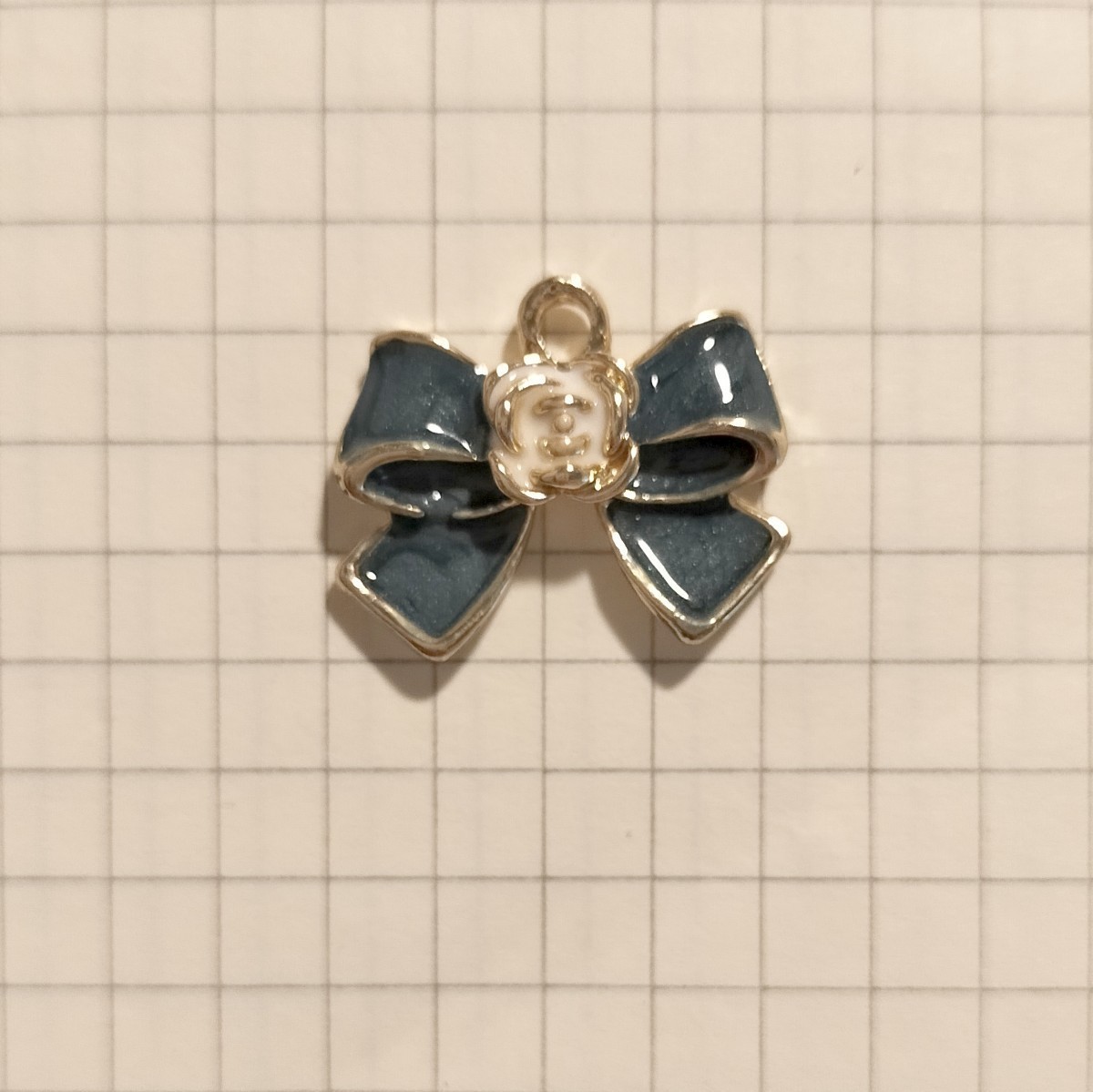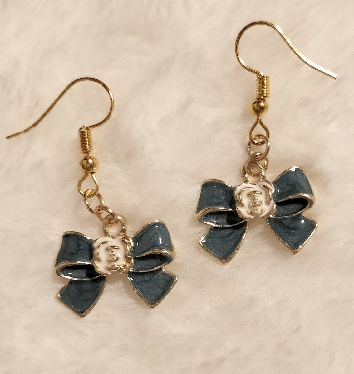 【No.2117】Chamiピアス/イヤリング リボンとお花 ブルー