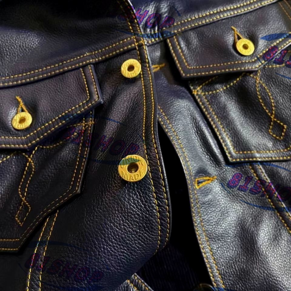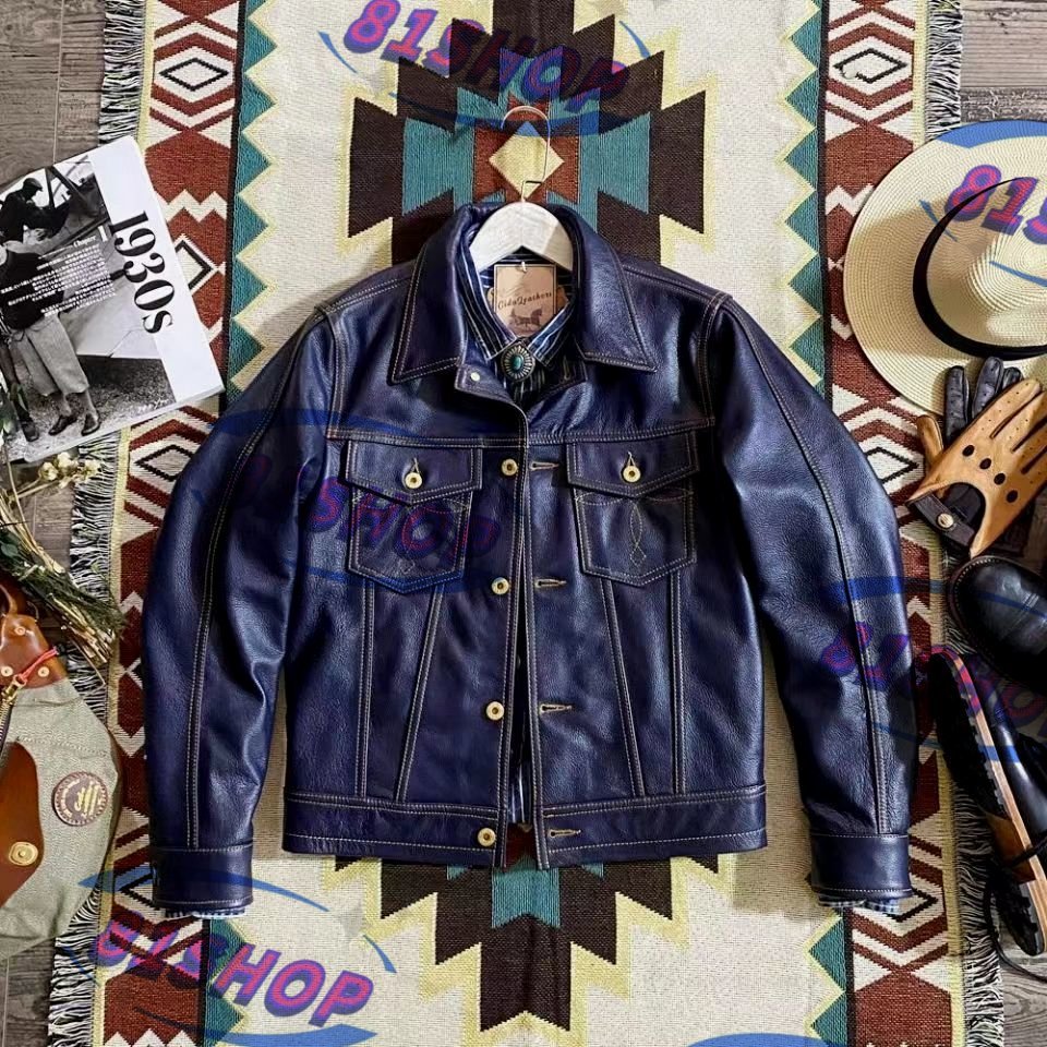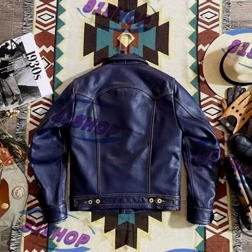 メンズ 革ジャン 牛革 ライダース レザージャケット バイクウエア ブルゾン 本革 ブルー