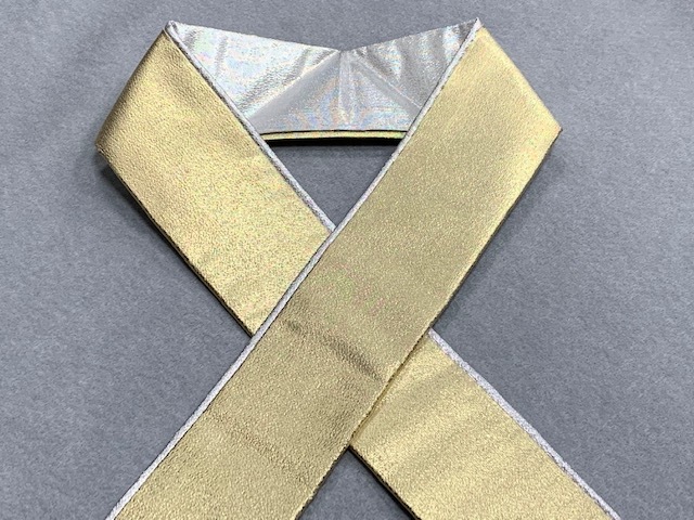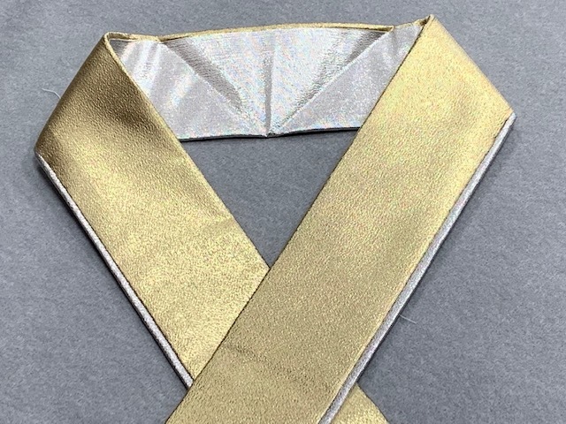 金銀の色合いですので、振袖から訪問着・付け下げなどの礼装着物に使えます。両面とも使えます。