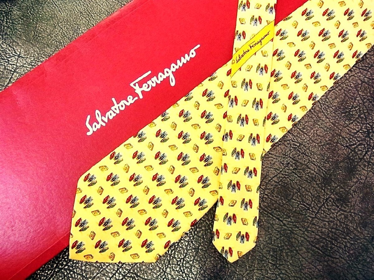 ♪vr0007♪良品♪【Ferragamo】フェラガモ【本 ブック 柄】ネクタイ