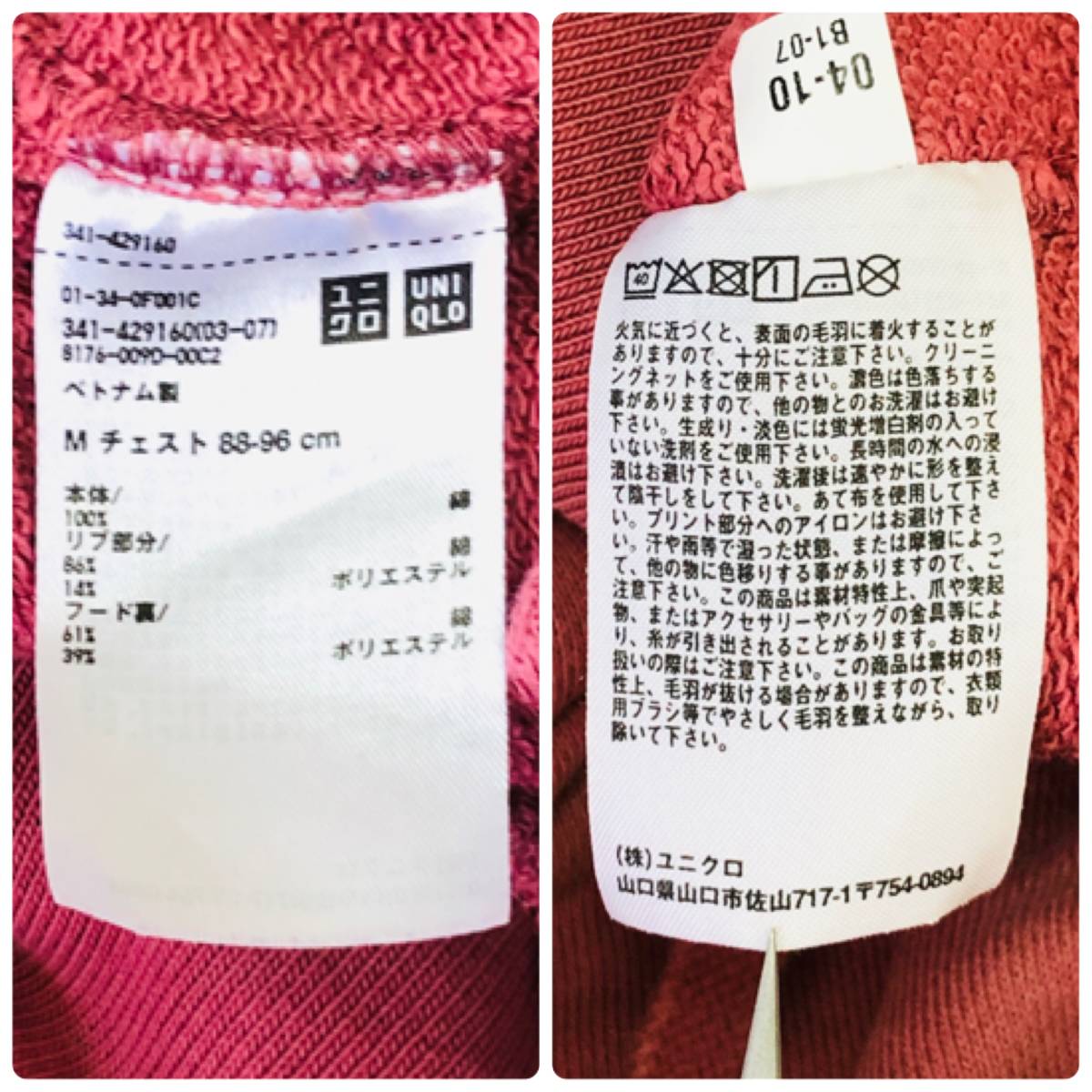 k2387 UNIQLO ユニクロ パーカー プルオーバー 長袖 フード ナチュラル M ピンク 無地 シンプル 綿100% ベーシックカジュアルスタイル