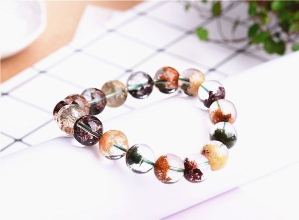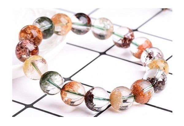 [EasternStar]海外発送 フラワー ファントムクォーツ ブレスレット 彩幽霊水晶 幻影水晶 山入水晶 Flower Phantom 玉径7mm