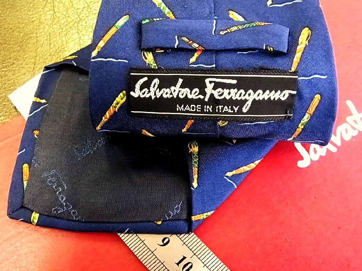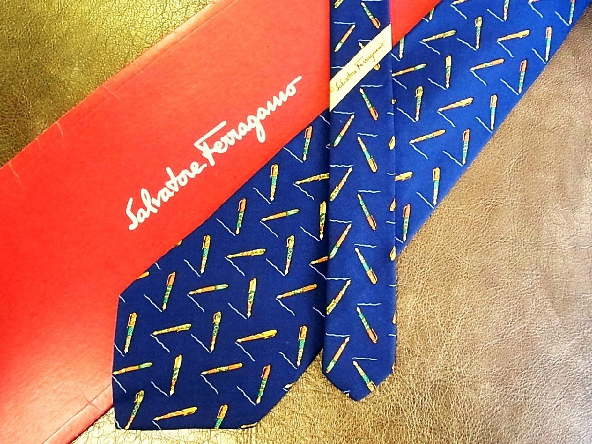 ♪vr0893♪良品♪【Ferragamo】フェラガモ【万年筆 文房具 柄】ネクタイ