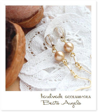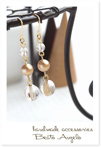 ◆◆+angelo+チェコメロンとクリスタルのピアス(p-265)クリスタルゴールドライン G m003 天然石 水晶 スワロフスキーパール