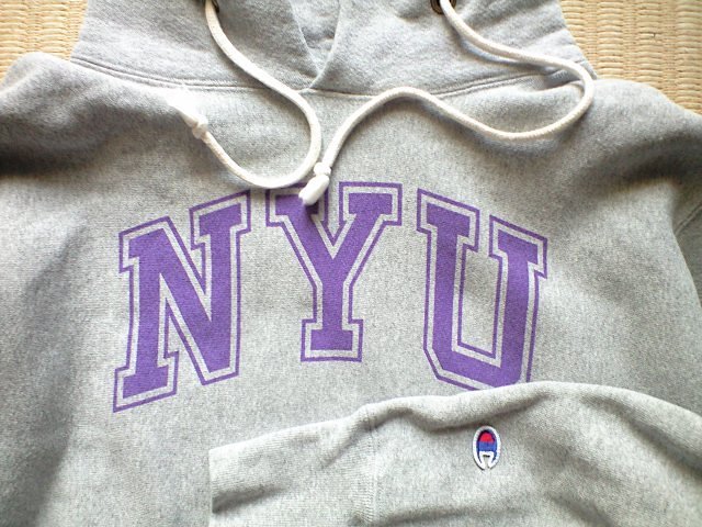 胸には「NYU(ニューヨーク大学)」のプリント