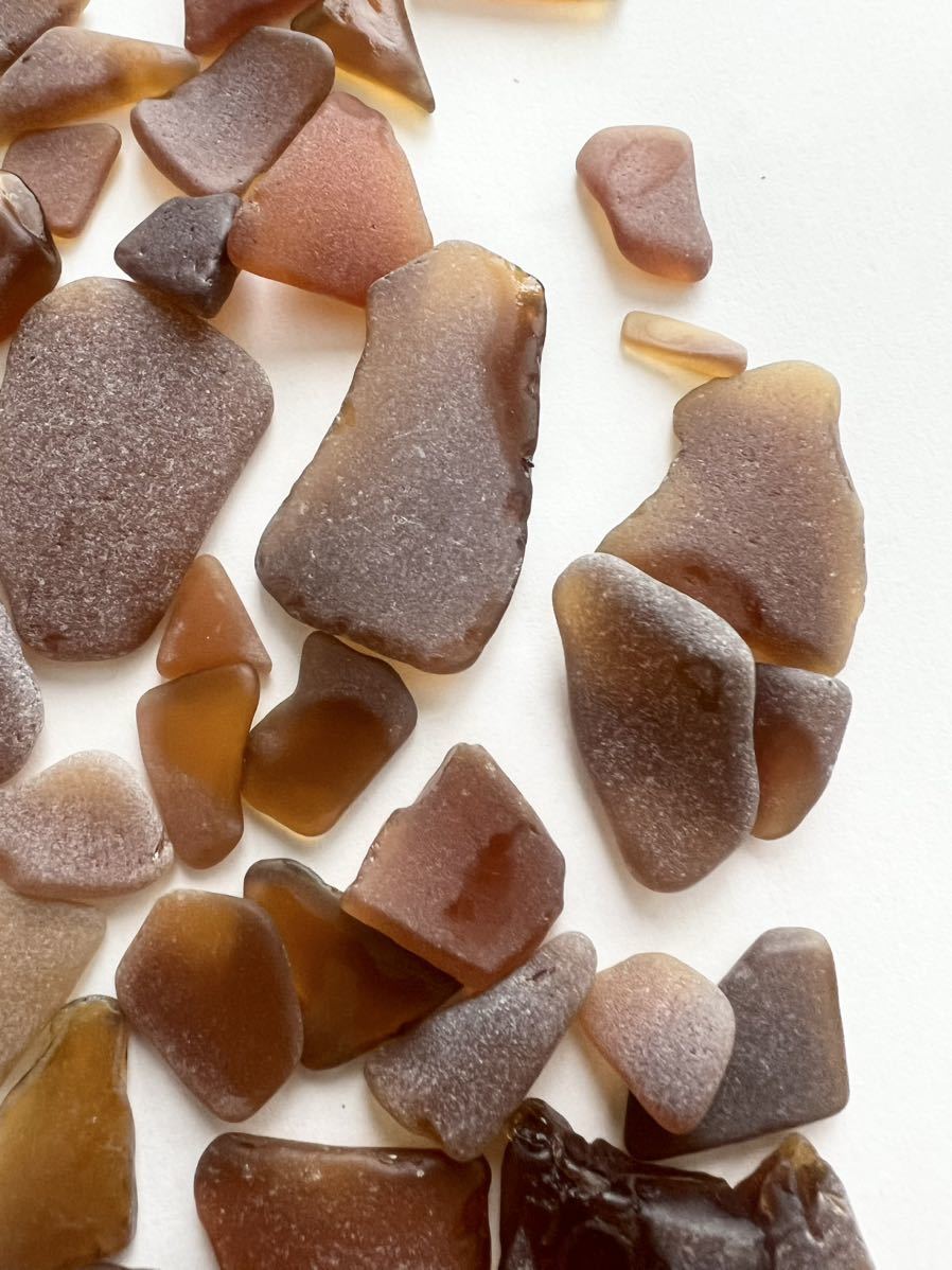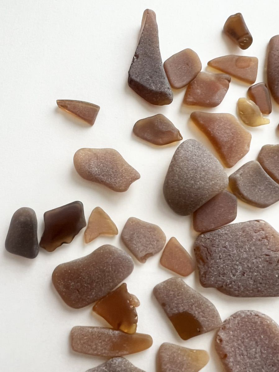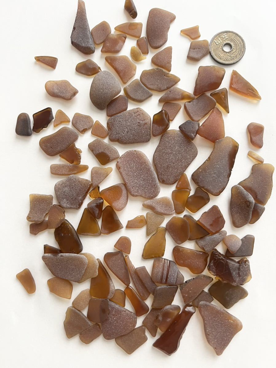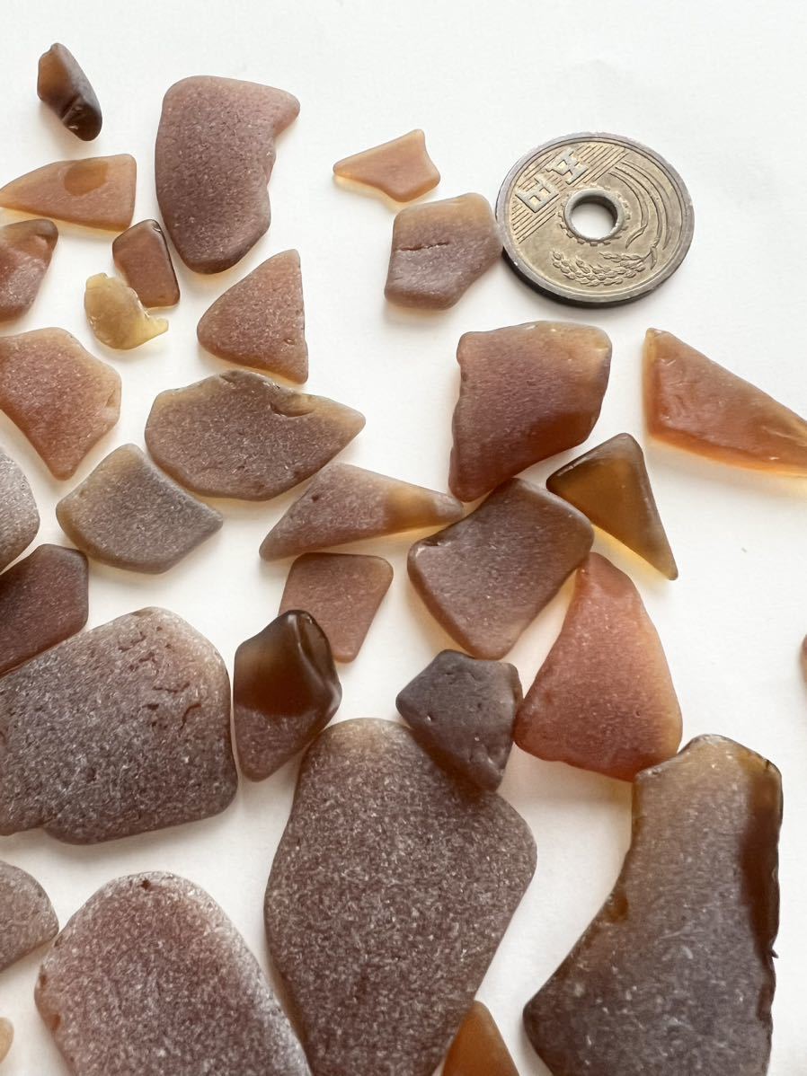 なるべく波打ち際の流れ付きたてのシーグラスを集めました。