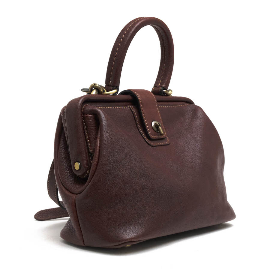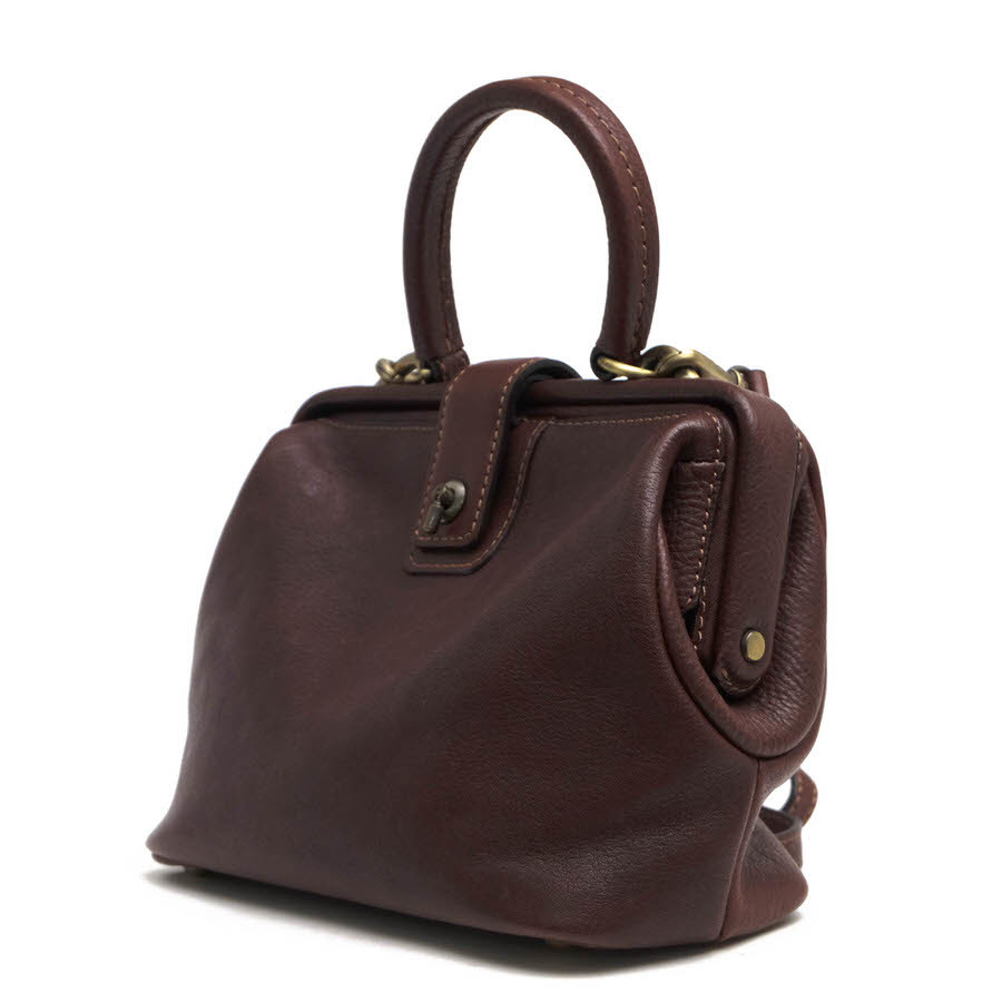 昔のポストマンの鞄をイメージしたレトロデザインのミニショルダー。大きな口金とふっくらした形が特徴で、口金が大きく開き、出し入れがスムーズで手荷物もすっきり収まります。小さなサイズながら存在感があり、装いのアクセントになります。底鋲付きで底面を汚しにくく、サイドのカッティングがフォルムを美しく仕上げます。自然な風合いで丈夫なオイルヌメ革は、柔らかさとアンティークな風合いが魅力です。 |