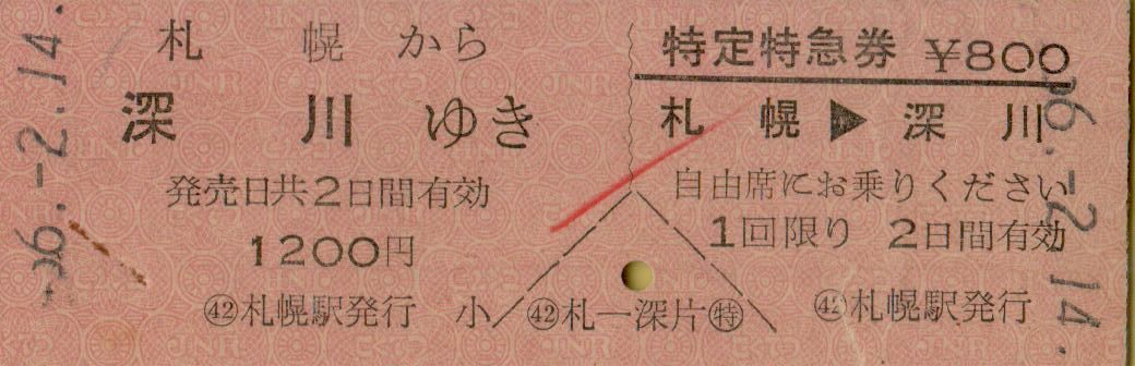 ■■ 国鉄 札幌 【 乗車券 特定特急券 】