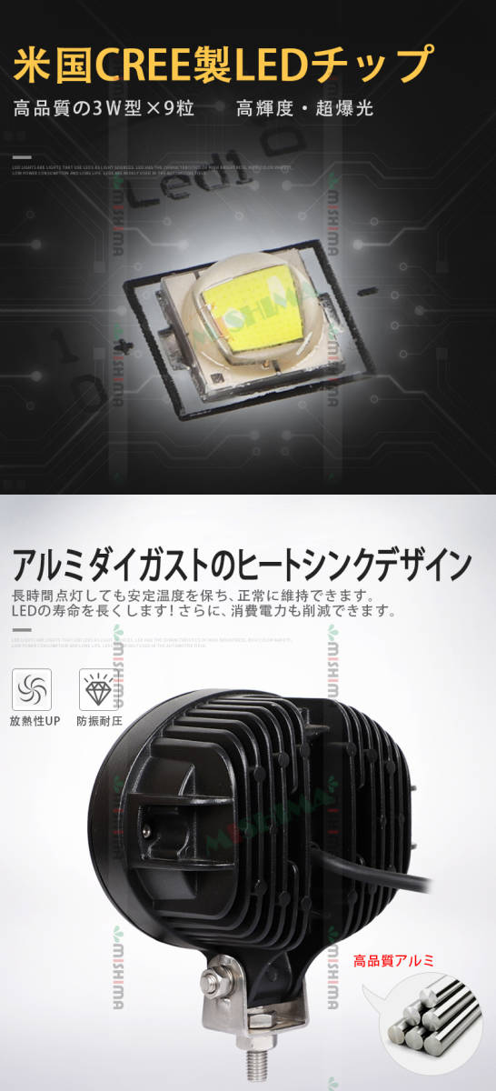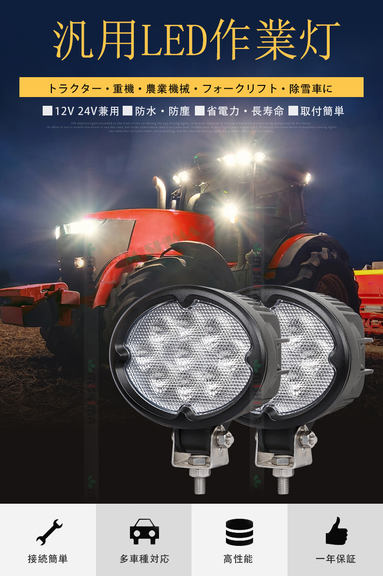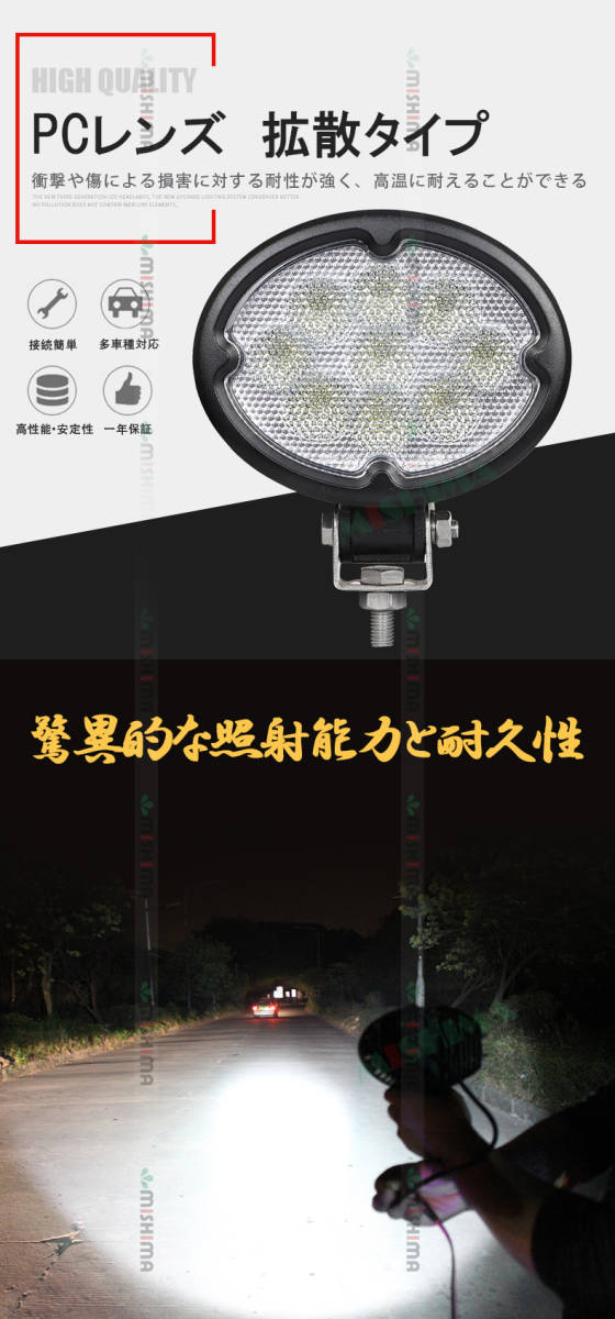 msm630 タイヤ灯 補助灯 楕円型 led 作業灯 27W【単品】LED ワークライト 拡散 路肩灯 集魚灯 軽トラ 荷台灯 防水 ヘッドライト 12V 24V