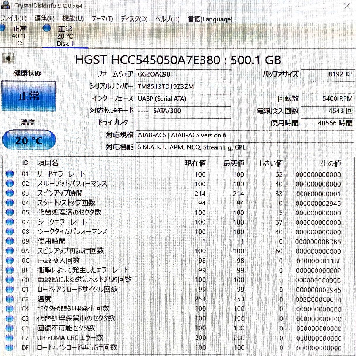 ★ハードディスクはCrystalDiskInfoにて正常に動作することを確認しています。