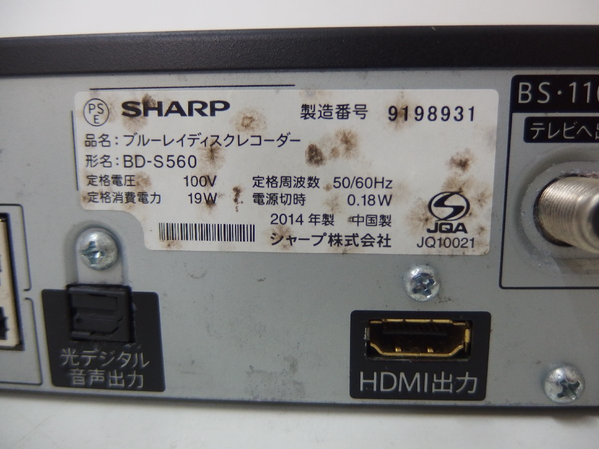 10▲/Zク3603 保証有 ☆ SHARP AQUOS ブルーレイディスクレコーダー BD-S560 2014年製 中古