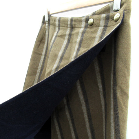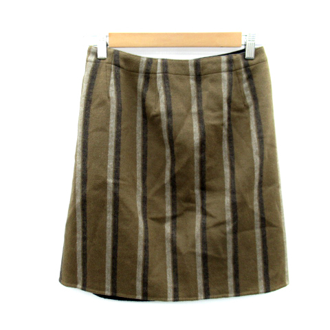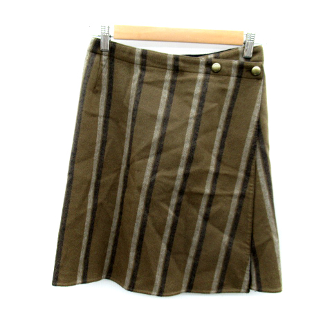 イエナ IENA ラップスカート 台形スカート ひざ丈 ストライプ柄 ウール 36 茶 ブラウン /SY15 レディース