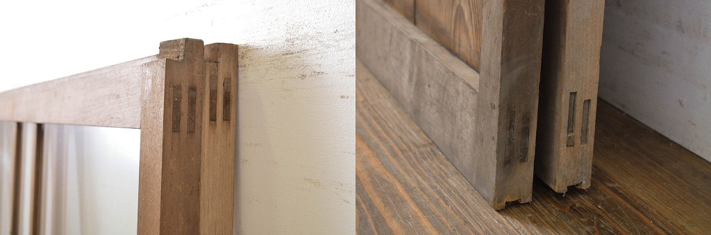アンティーク建具 趣ある木味が魅力のガラス戸2枚セット(引き戸)(R-063584)