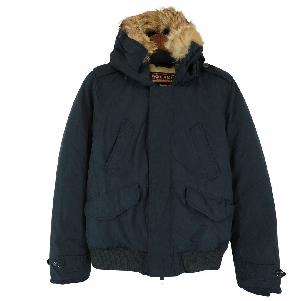 [商品管理番号] O7503 [ブランド] WOOLRICH/ウールリッチ [表記サイズ] S [実寸サイズ] 肩幅:約44cm 着丈:約63cm 身幅:約56cm 袖丈:約66cm [素材] 表地 : ナイロン 中綿 : ダウン [色] ネイビー [仕様] フードドローコード 防寒 [状態] | |||