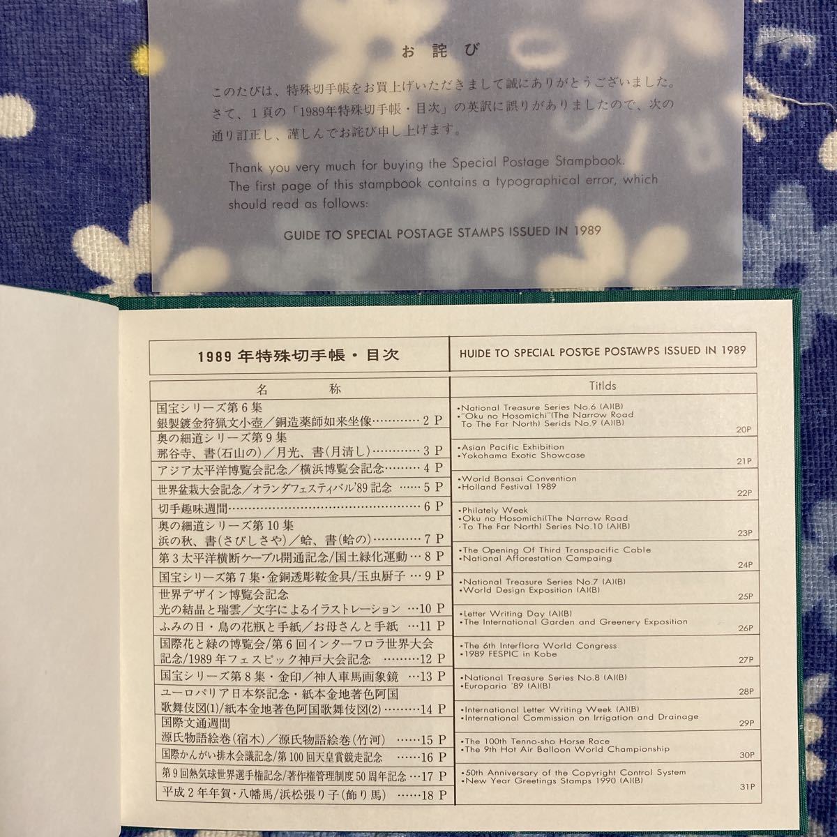 特殊切手帳 [1989] 未使用切手 39枚 (120円×1 100円×3 80円×1 70円×1 62円×23 60円×7 41円×3) 即決 複数あり ☆送料185円