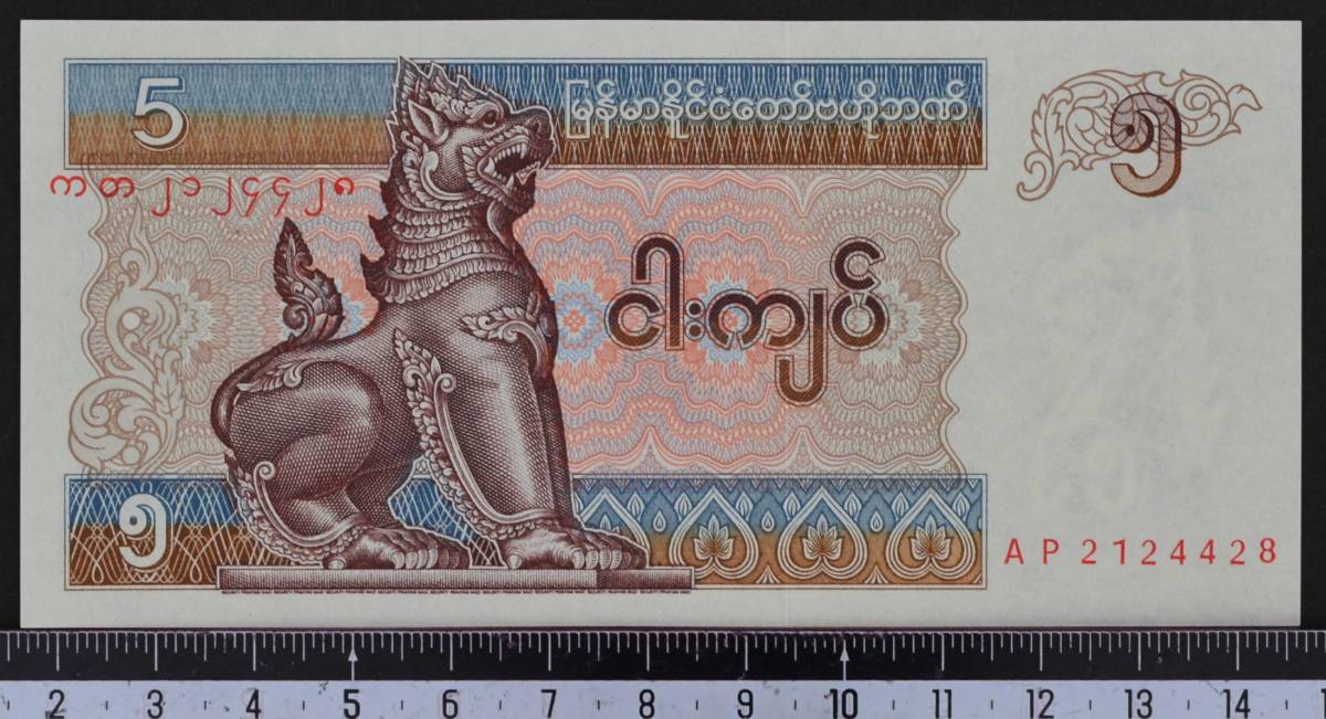 外国紙幣 ミヤンマ 1997年 未使用 5チャット