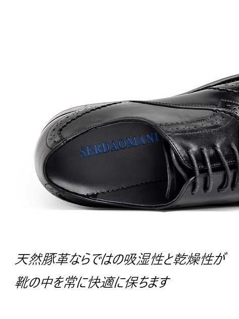 定番!! 新品 メンズビジネスシューズ 天然皮革ウィングチップ ブラック SE24.5cm