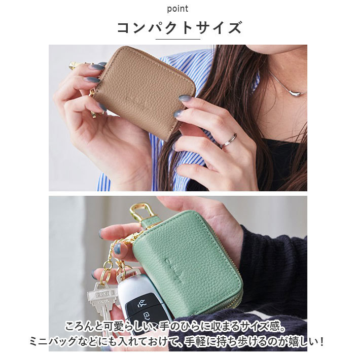 商品説明 | ・・複数の鍵をひとまとめ♪LIZ DAYSからシンプルで使いやすい「Wポケッミニトスマートキーケース」が新登場。 ・【コンパクトサイズ】 ・ころんと可愛らしい、手のひらに収まるサイズ感。ミニバッグなどにも入れておけて、手軽に持ち歩けるのが嬉しい! ・【ラウンド型にオープン】 ・開口部はラウンド型に大きく開いて、中身が見やすく取り出しラクラク。 ・【うれしいWポケット仕様】 ・収納スペースは2ルームに分かれており、スマートキーを2個収納可能。合わせて3つのチェーンリング付きで、落としたり紛失の心配いらず◎ ・【360度回転式のカラビナフック】 ・上部のカラビナフックは360度回転!バッグやベルトループなどに、簡単取り付け。 ・【大人な仕上がり】 ・シボ感のある牛革を採用。使うほどに味わいが増し、愛着が湧くアイテム。内生地はサラッと上質な生地感。 ・【お気に入りをチョイス】 ・ベーシックカラーや差し色になるカラーをラインナップ!ギフトにもおすすめ。 |