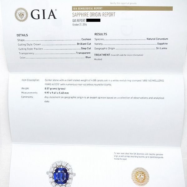 画像のGIAレポートナンバーは黒く塗りつぶし、編集しています。リングにPt刻印はございませんが、海外でプラチナを表す犬の刻印がございます(画像参照)。