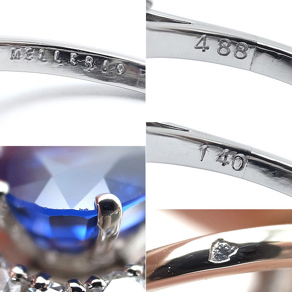コメント 1613年に創業したフランスの老舗ジュエラー「メレリオディメレー(MELLERIO dits MELLER)」。穏やかな神秘的なブルーの煌めき、クッションカットのスリランカ産サファイア(4.88ct)に繊細な輝きを放つ14石のダイヤモンド(計1.40ct)で飾った優雅な気品漂うリングです。サファイアとダイヤモンドに高低差をつけることにより、存在感のある美しい輝きを際立たせています。